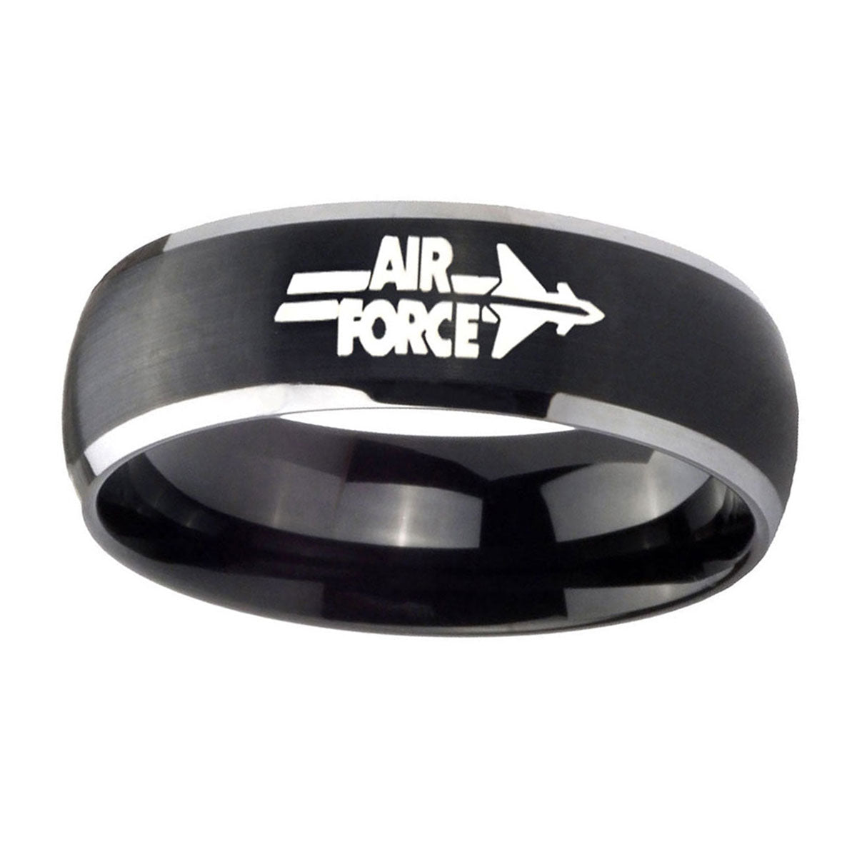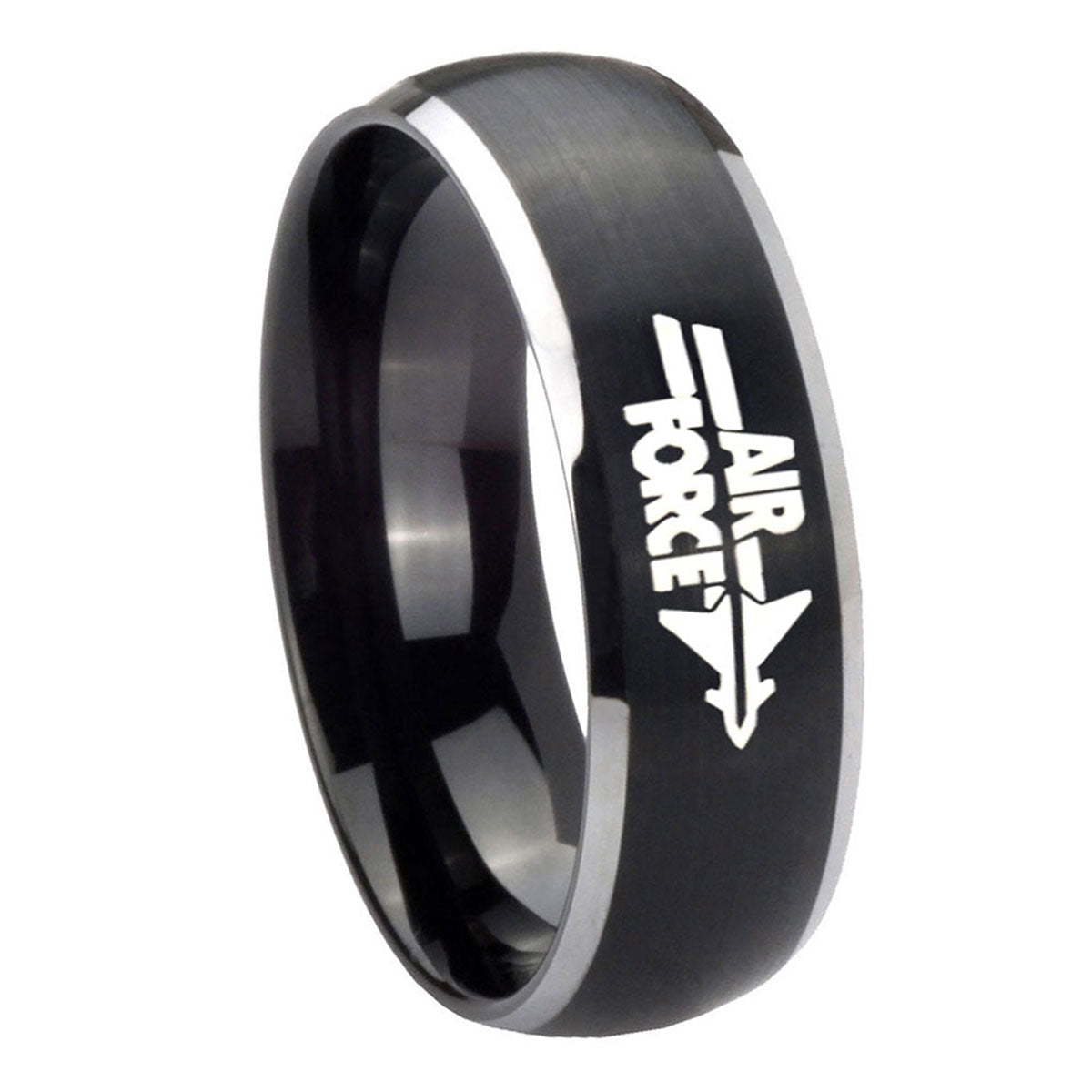 5, 8mm Matte Brush Black Dome Air Force 2 Tone Tungsten Laser Engraved Ring