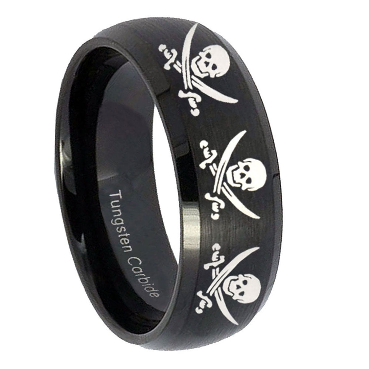 5, 8mm Multiple Skull Pirate Dome Brush Black Tungsten Carbide Wedding Band Ring