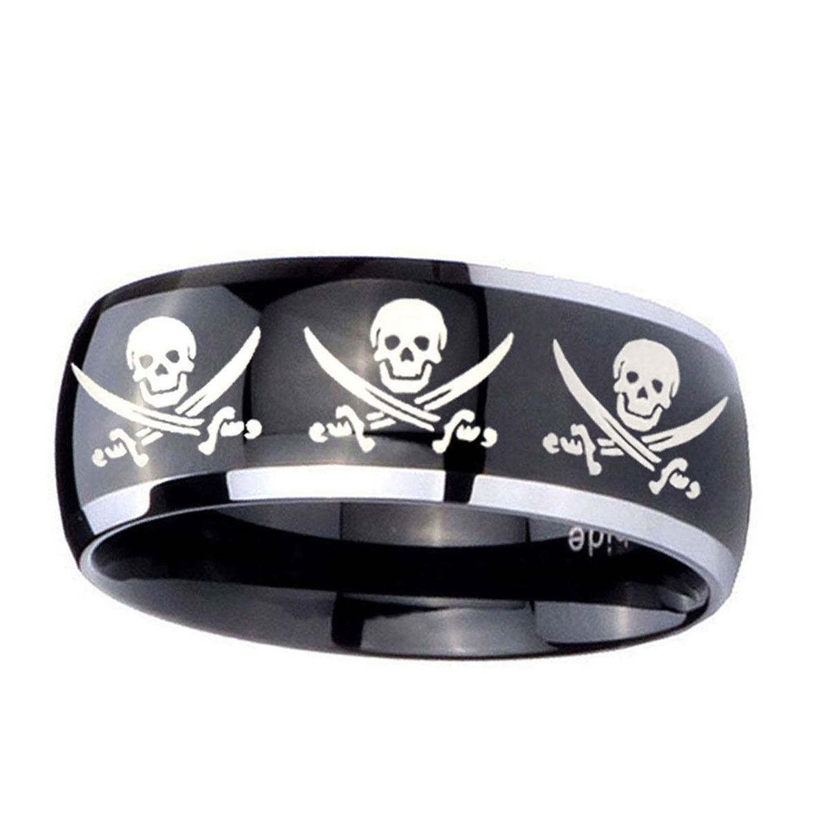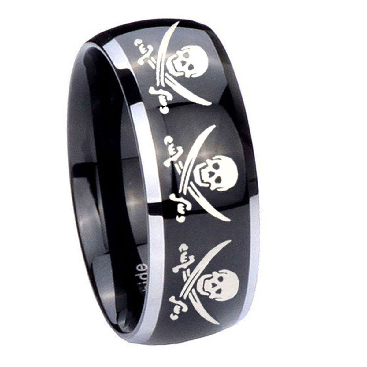 10mm Multiple Skull Pirate Dome Glossy Black 2 Tone Tungsten Mens Promise Ring