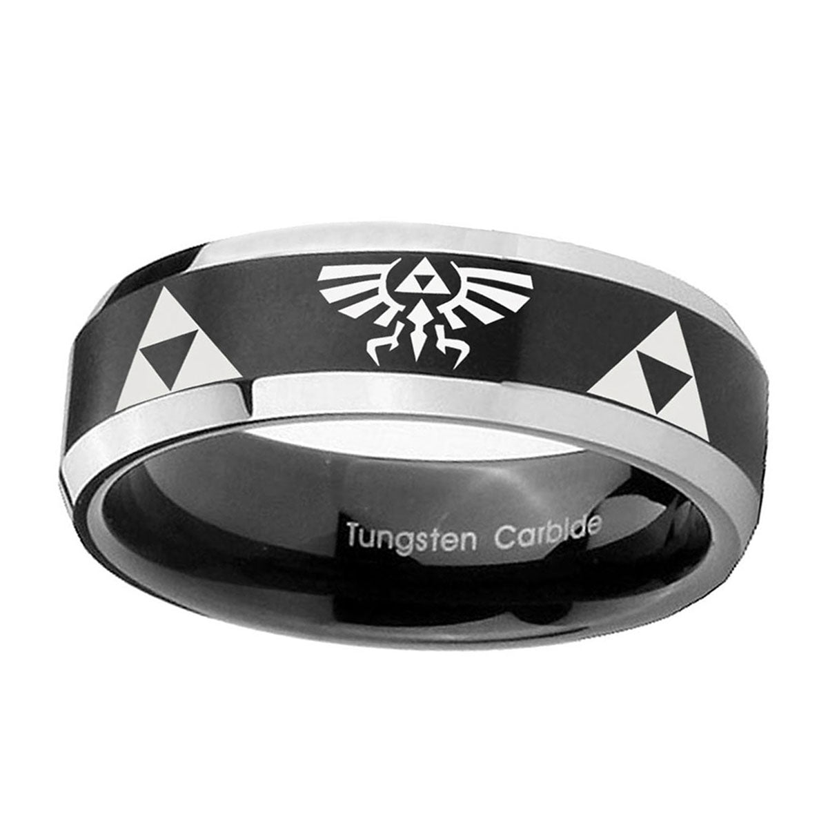 Introuding 5, 8mm Legend of Zelda Beveled Edges Brush Black 2 Tone Tungsten Men's Band Ring . Offer in both 5mm and 8mm band width brushed black plated 2 tone fnished from size 4 to 14