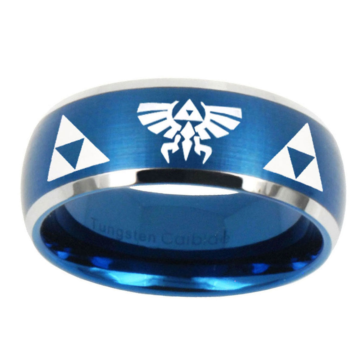 10mm Legend of Zelda Dome Brushed Blue 2 Tone Tungsten Men's Promise Rings
