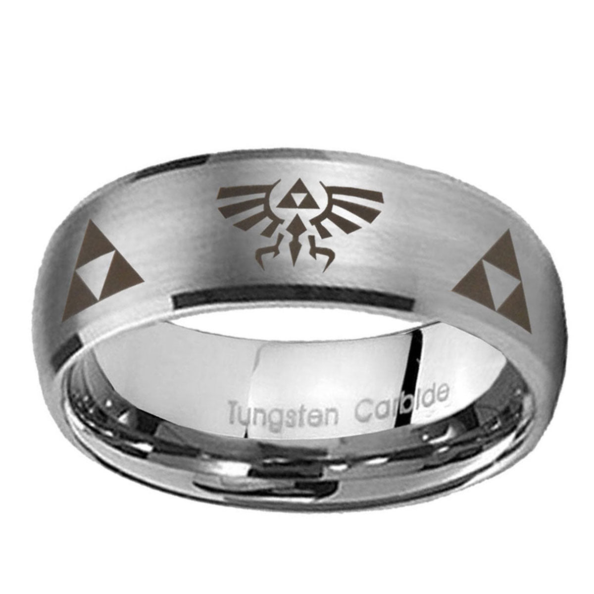 Customize the 10mm Legend of Zelda Dome Brushed Tungsten Carbide Custom Mens Ring. This brushed tungsten dome ring with Legend of Zelda design is perfect for personalization.