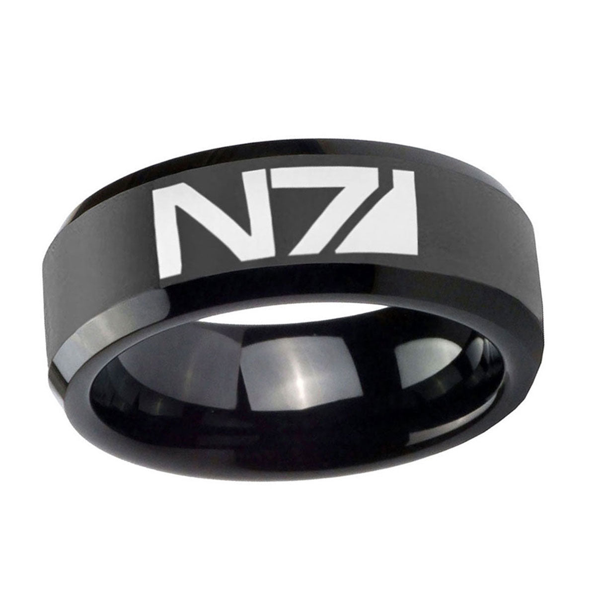 Introuding 5, 8mm N7 Design Beveled Edges Black Tungsten Carbide Mens Engagement Band . Offer in both 5mm and 8mm band width polished black plated fnished from size 4 to 14