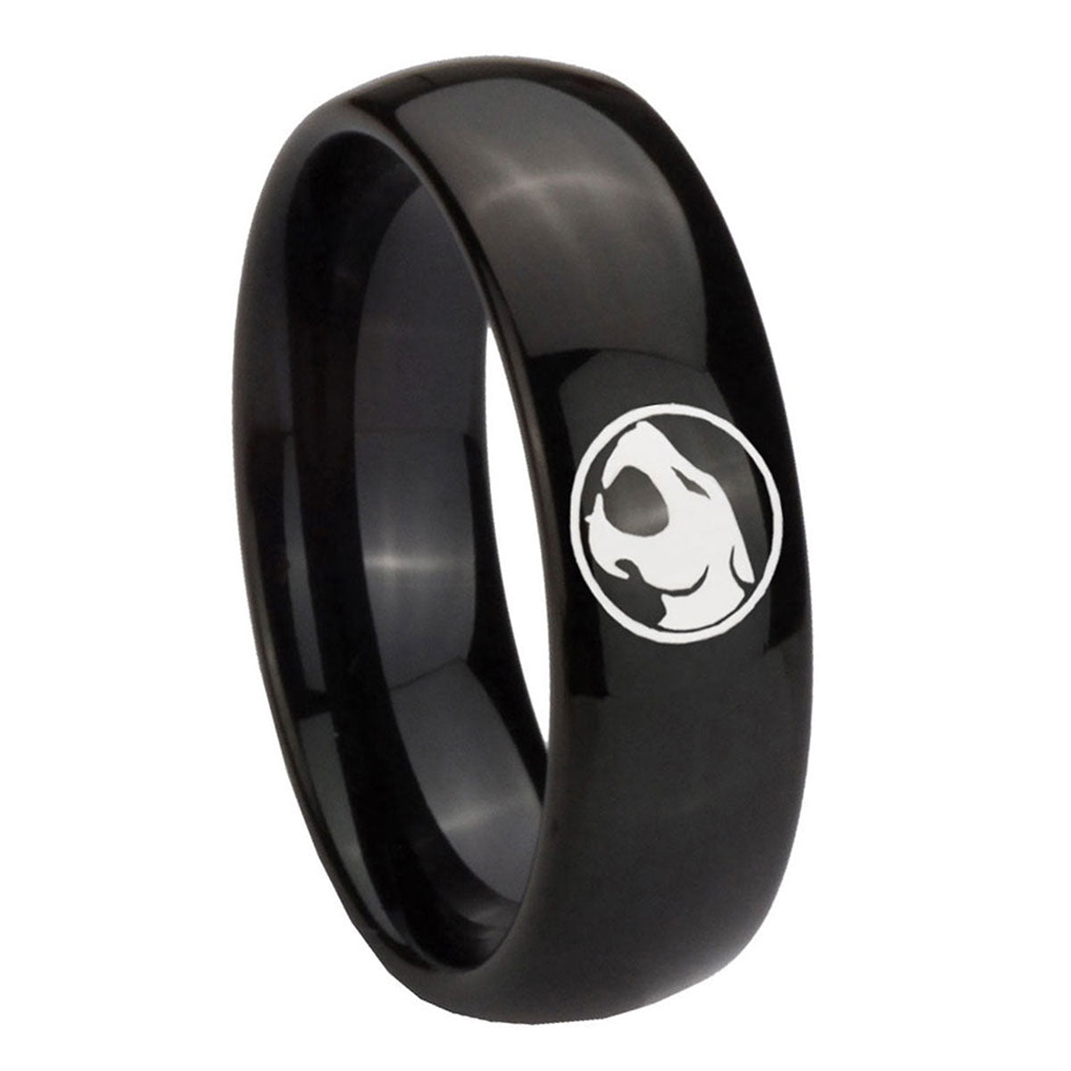 Introuding 5, 8mm Thundercat Dome Black Tungsten Carbide Mens Engagement Ring . Offer in both 5mm and 8mm band width polished black plated fnished from size 4 to 14
