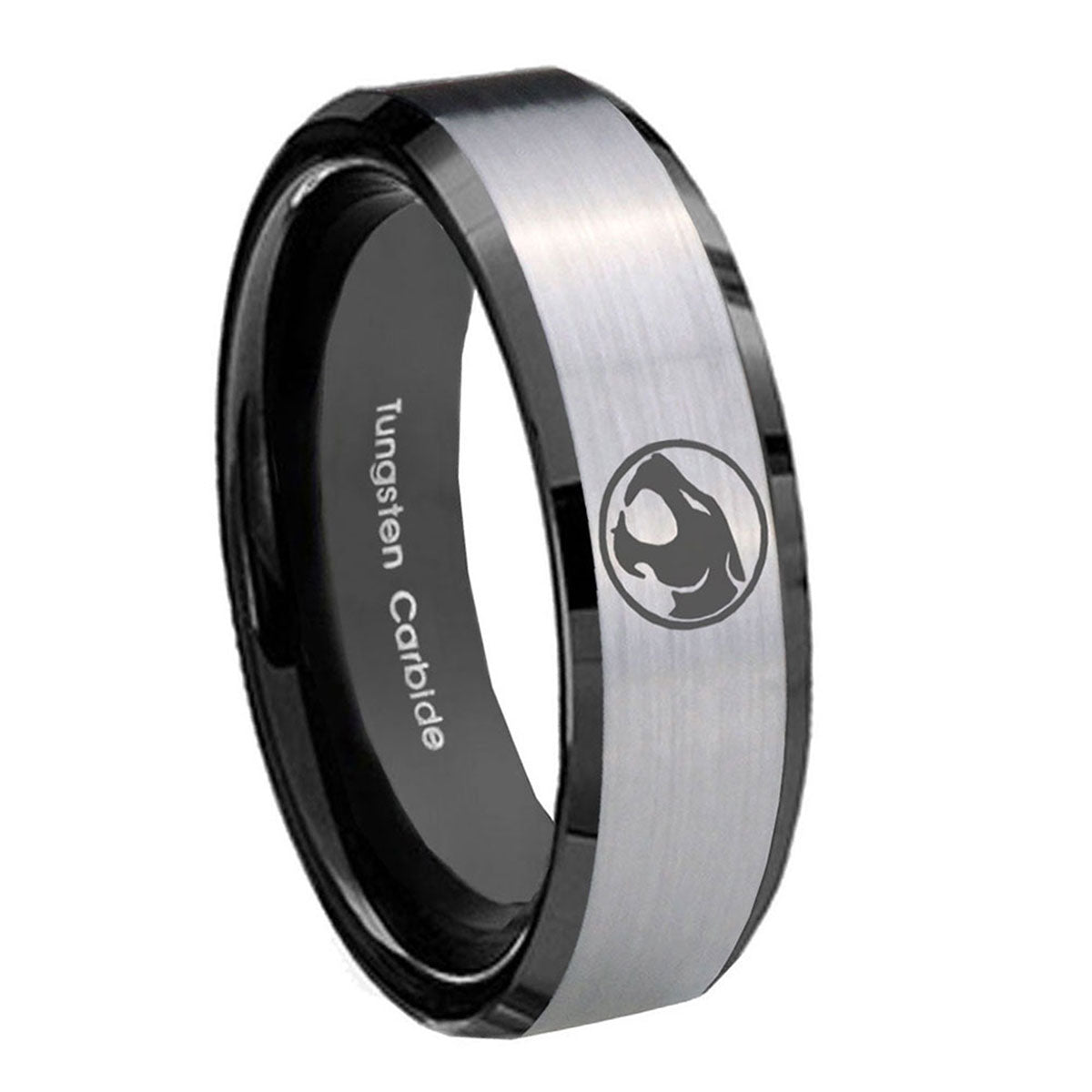 Introuding 5, 8mm Thundercat Beveled Edges Brush Black 2 Tone Tungsten Men's Engagement Band . Offer in both 5mm and 8mm band width brush black 2 tone finished from size 4 to 14