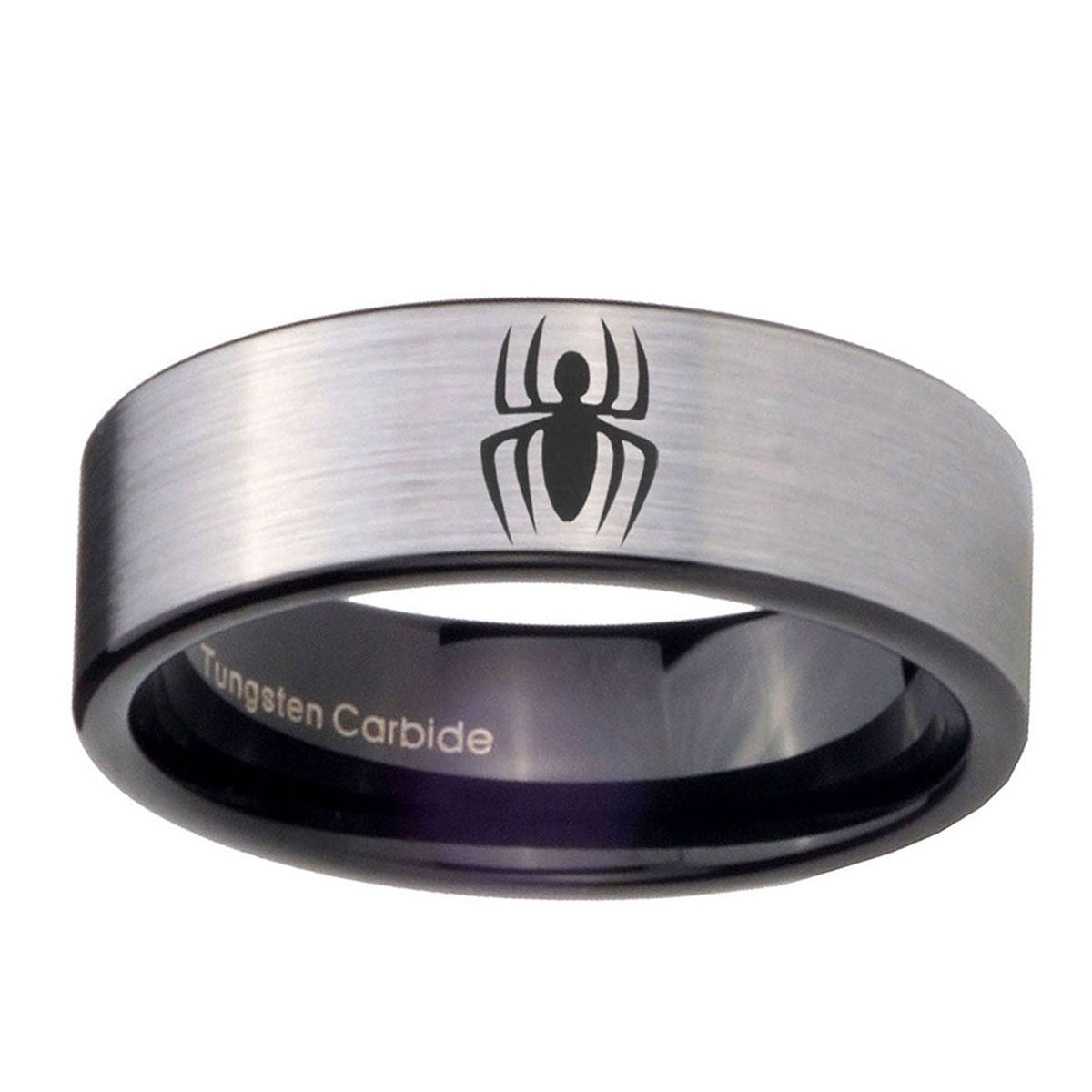 Introuding 6, 8mm Spiderman Pipe Cut Brushed Silver Tungsten Carbide Mens Wedding Ring . Offer in both 5mm and 8mm band width brushed silver and black plated fnished from size 4 to 14