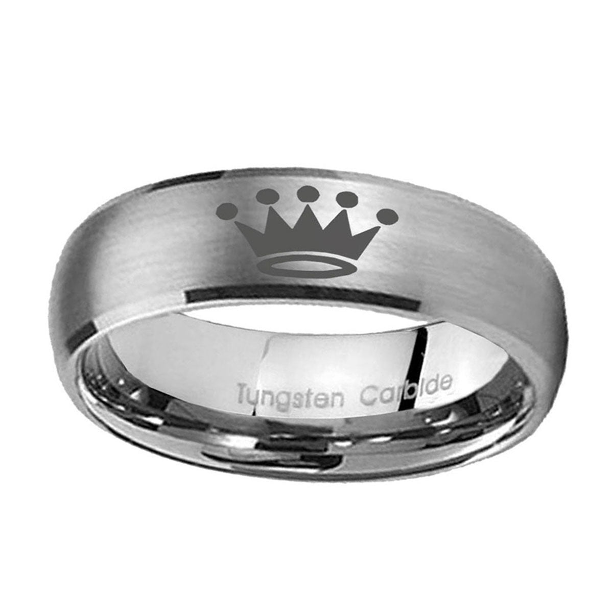 Introuding 5, 8mm Crown Dome Brushed Tungsten Carbide Mens Wedding Band . Offer in both 5mm and 8mm band width matte grey finished from size 4 to 14