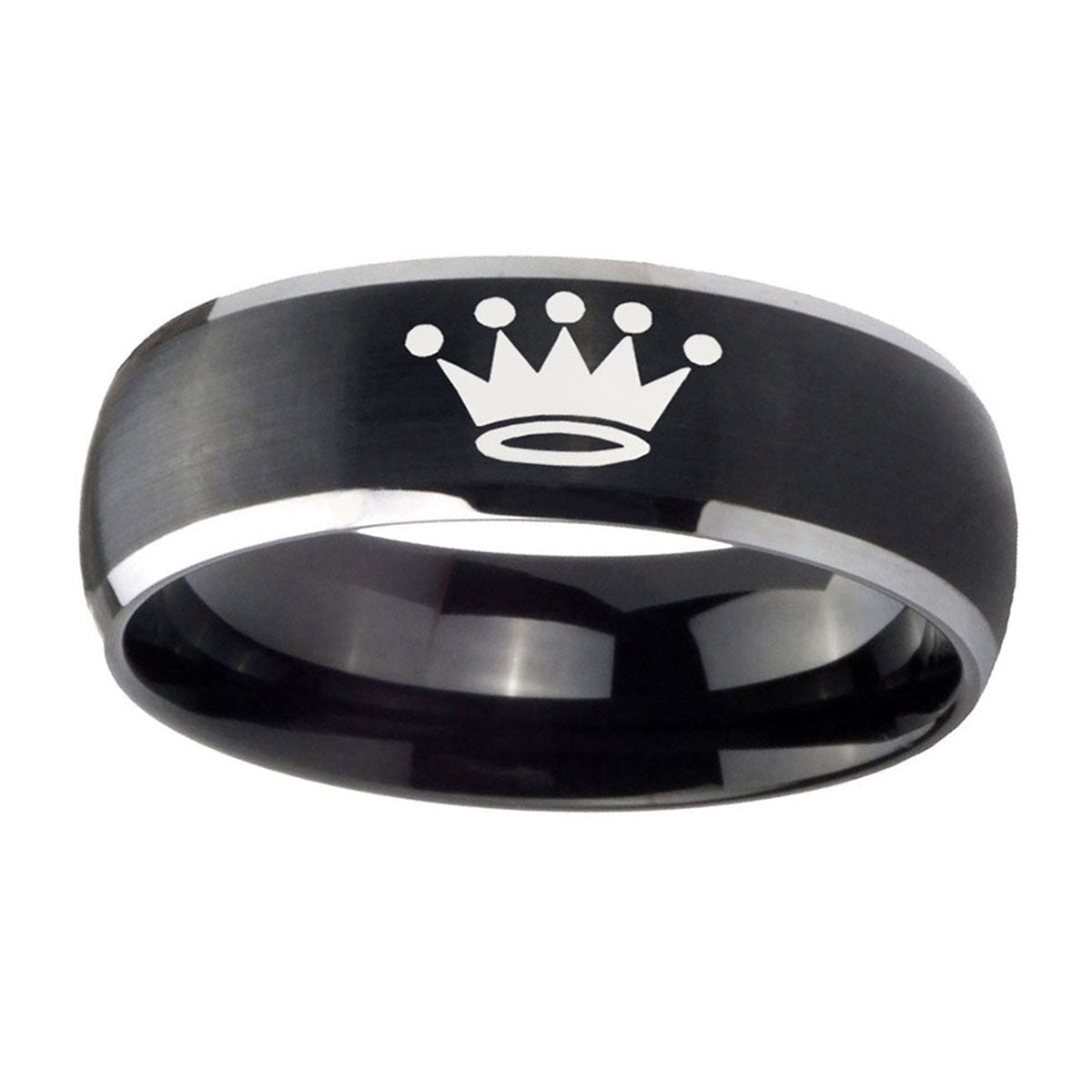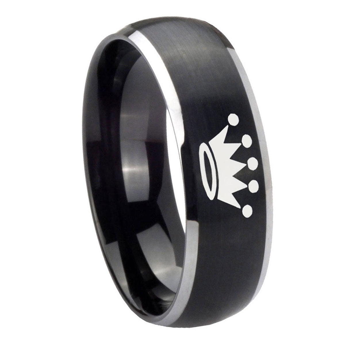 Introuding 5, 8mm Crown Dome Brushed Black 2 Tone Tungsten Carbide Mens Ring Personalized . Offer in both 5mm and 8mm band width brushed black plated fnished from size 4 to 14