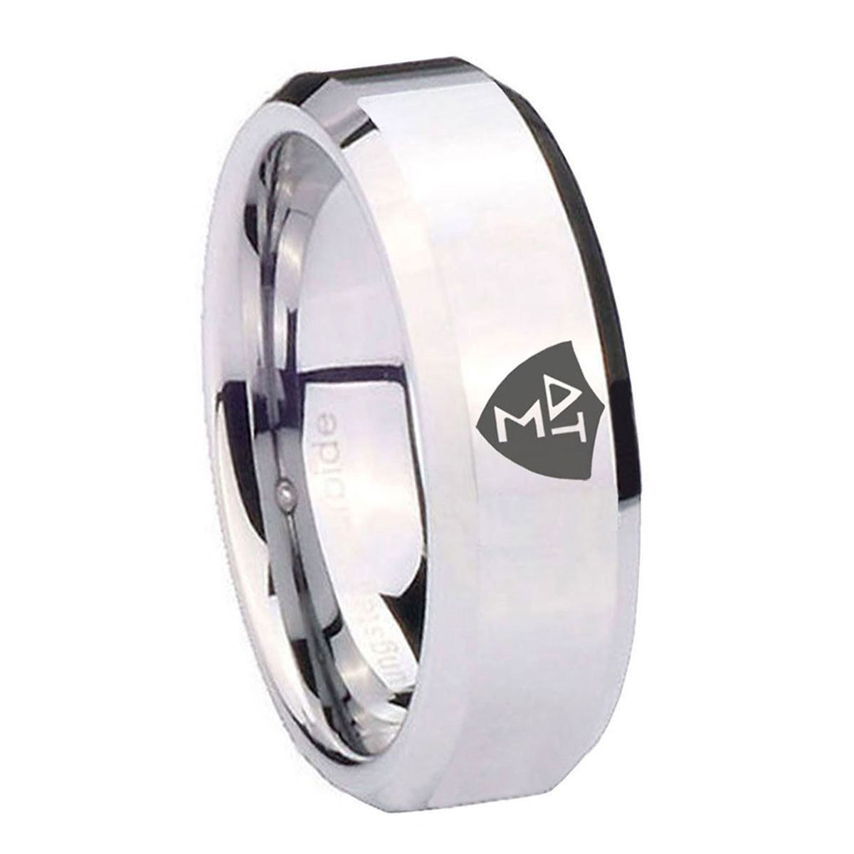 Celebrate milestones with the 10mm Greek CTR Beveled Edges Silver Tungsten Carbide Mens Anniversary Ring. This silver tungsten ring with Greek CTR design is perfect for anniversaries.