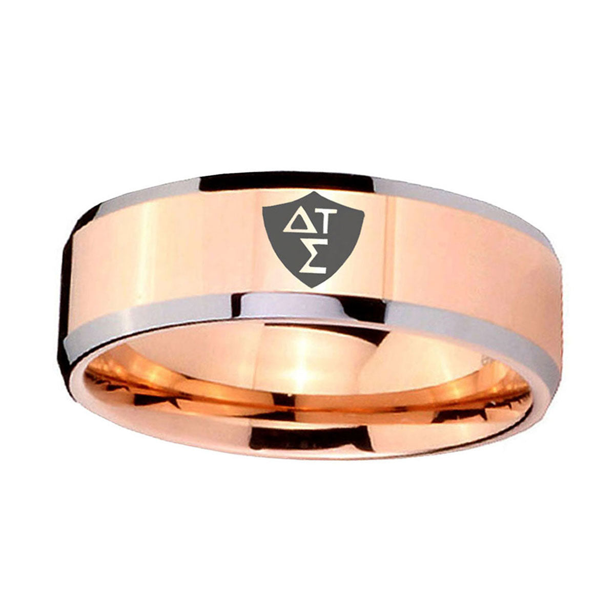 5, 8mm Greek CTR Beveled Edges Rose Gold Tungsten Carbide Wedding Engraving Ring