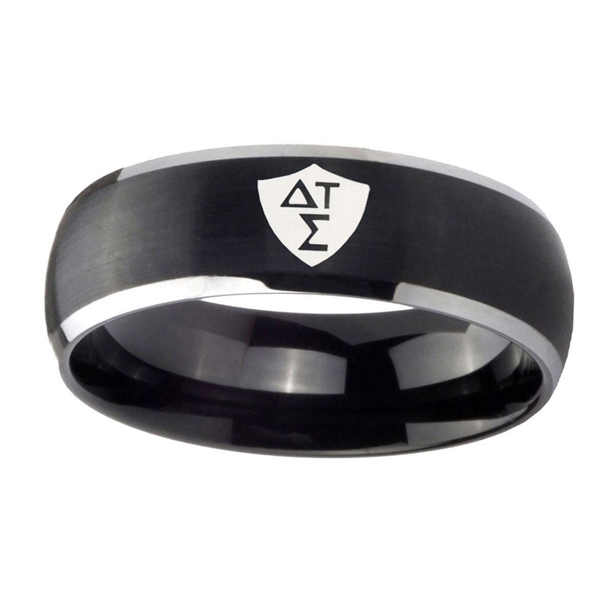 5, 8mm Greek CTR Dome Brushed Black 2 Tone Tungsten Carbide Engraved Ring