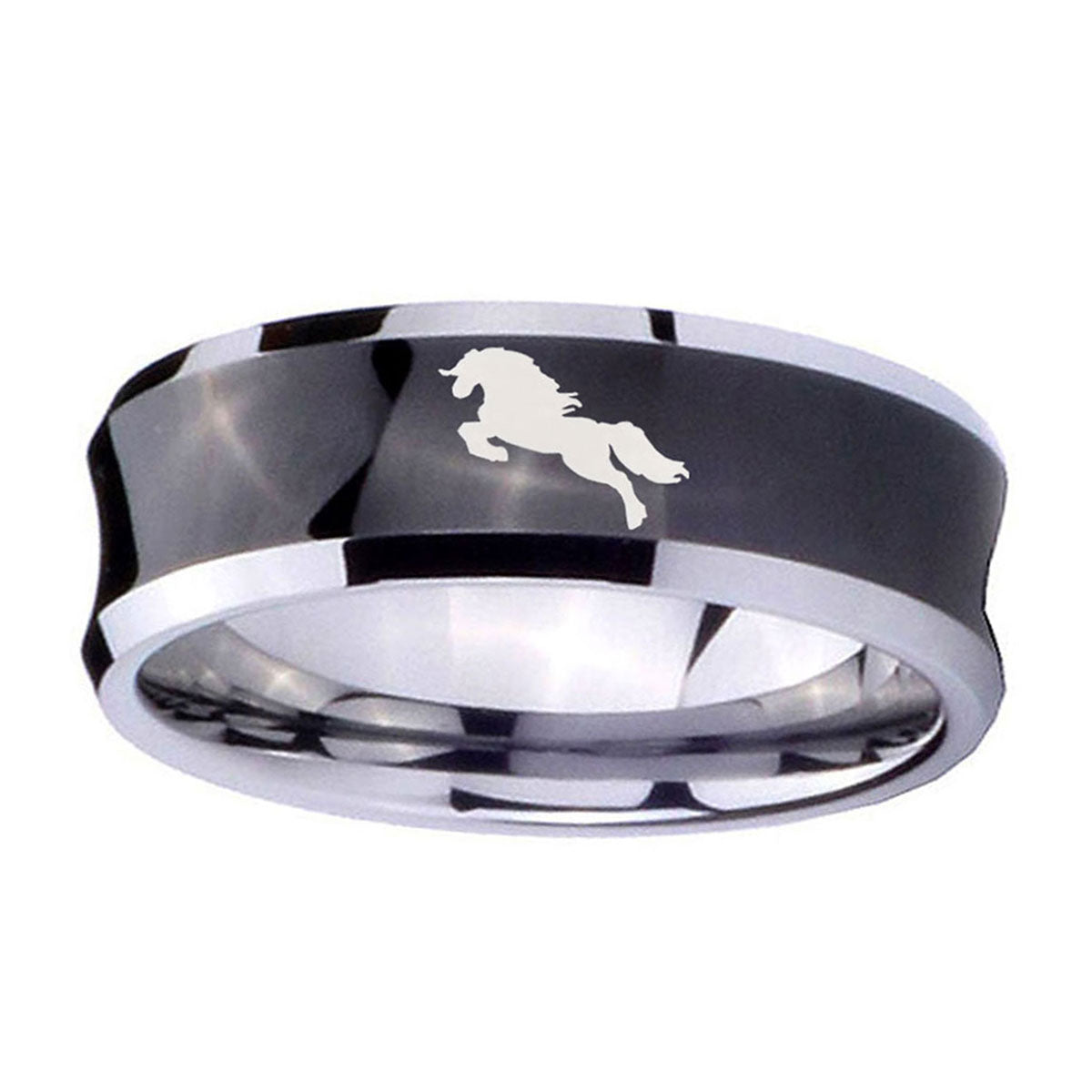 Customize the 10mm Horse Concave Black Tungsten Carbide Custom Mens Ring. This concave black tungsten ring with Horse design is perfect for personalization.