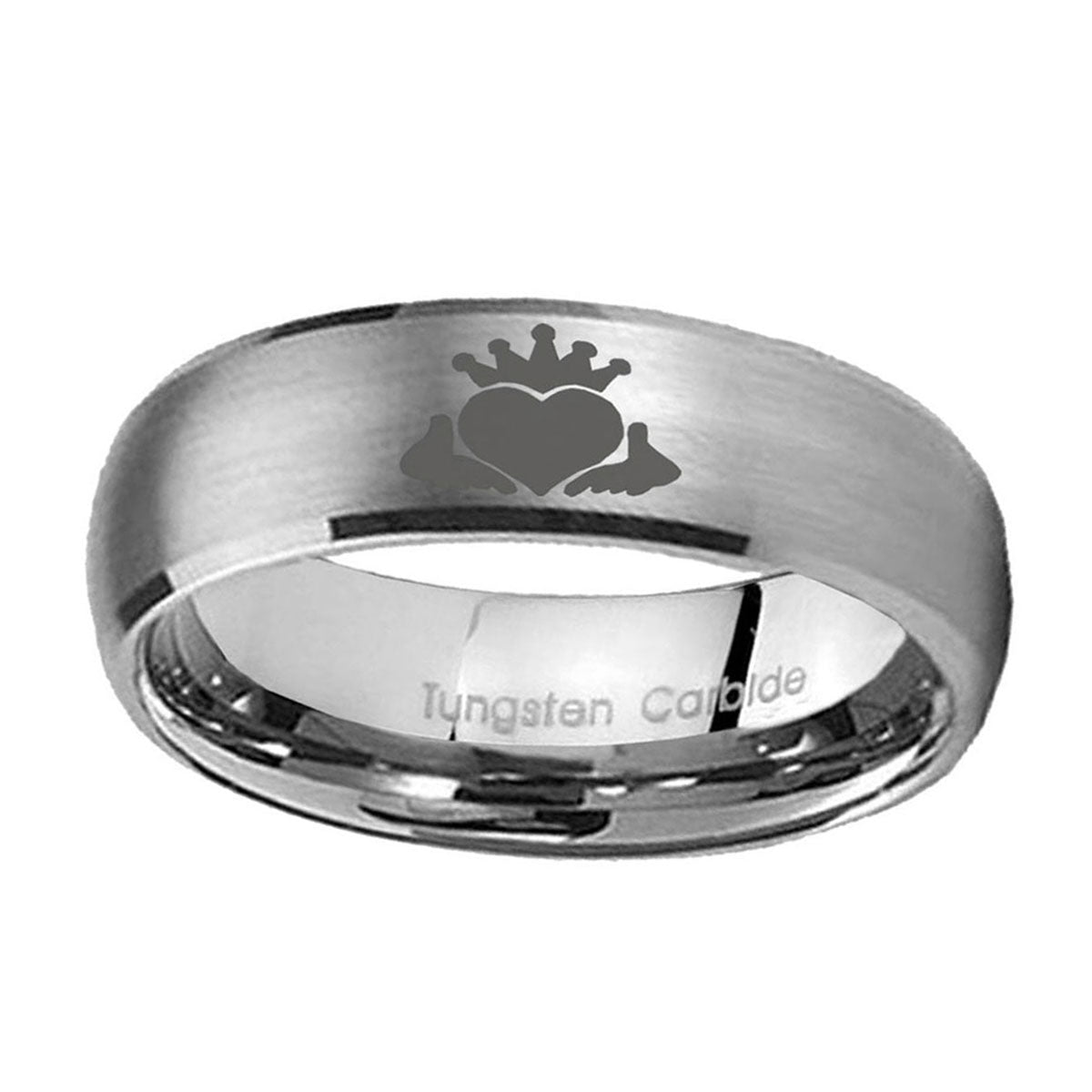 5, 8mm Claddagh Design Dome Brushed Tungsten Carbide Wedding Engagement Ring