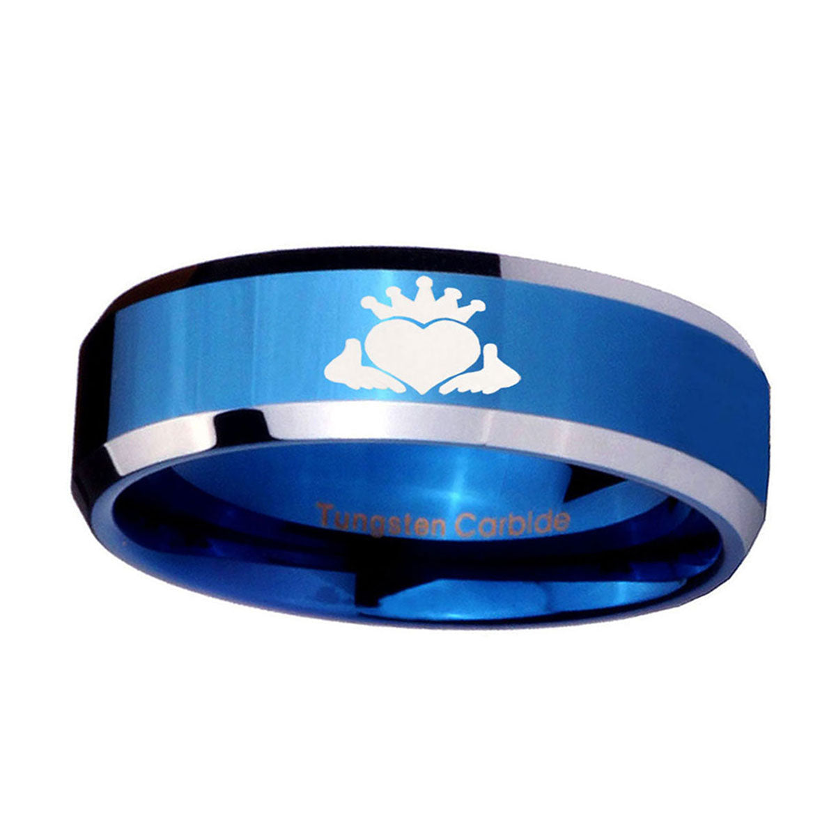 10mm Claddagh Design Beveled Edges Blue 2 Tone Tungsten Carbide Rings for Men