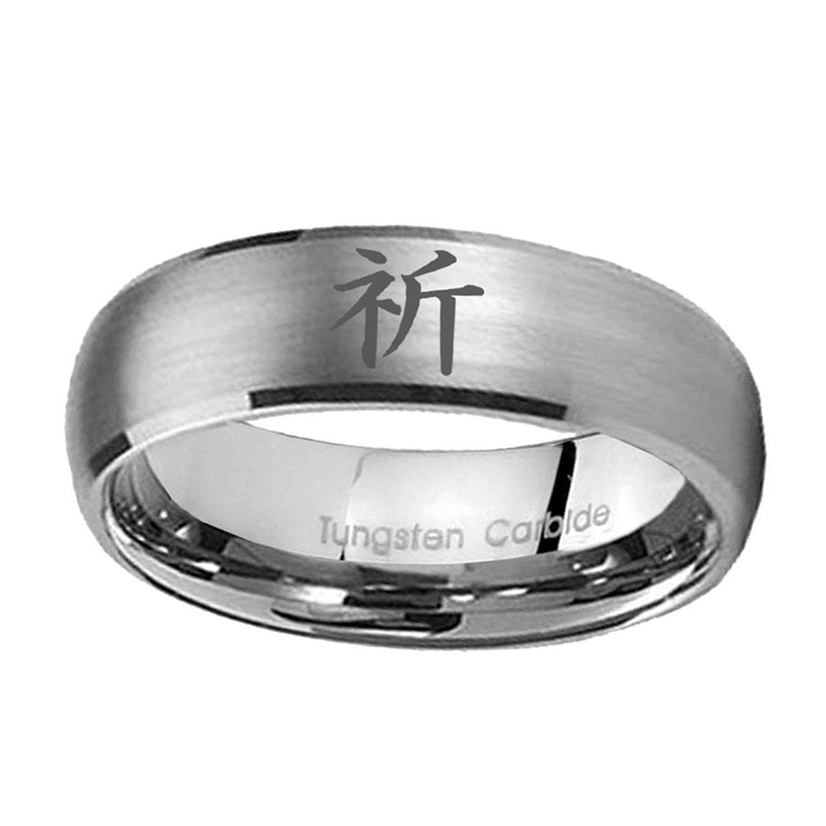 10mm Kanji Prayer Dome Brushed Tungsten Carbide Men's Band Ring