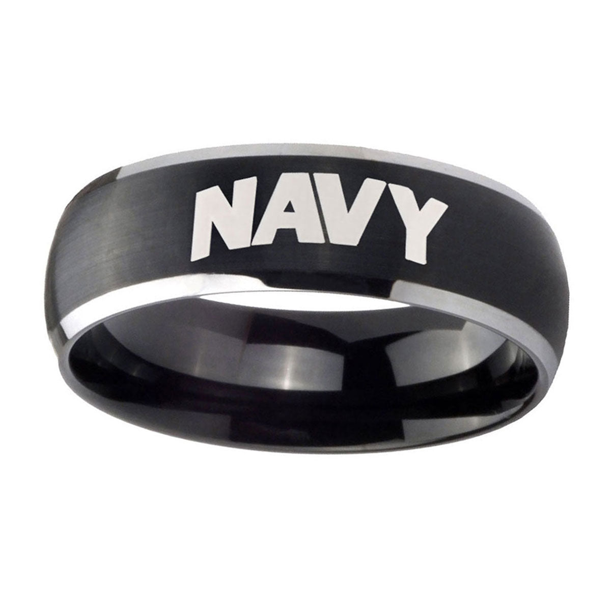 5, 8mm Navy Dome Brushed Black 2 Tone Tungsten Carbide Anniversary Ring