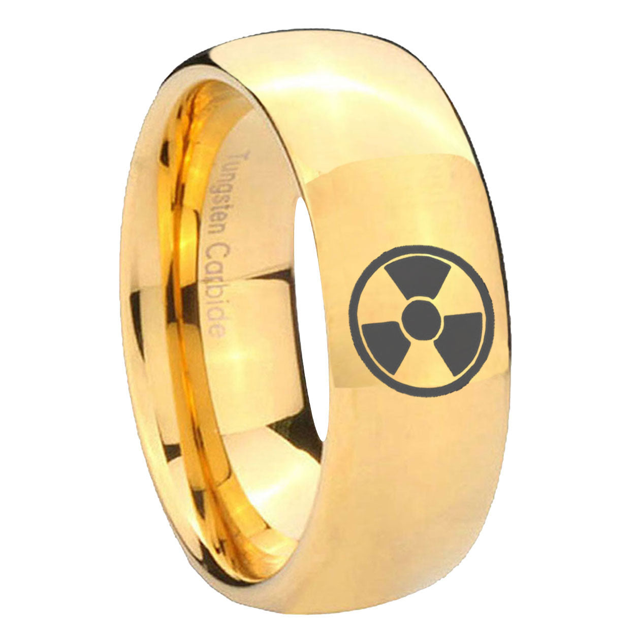 5, 8mm Radiation Dome Gold Tungsten Carbide Mens Ring Engraved