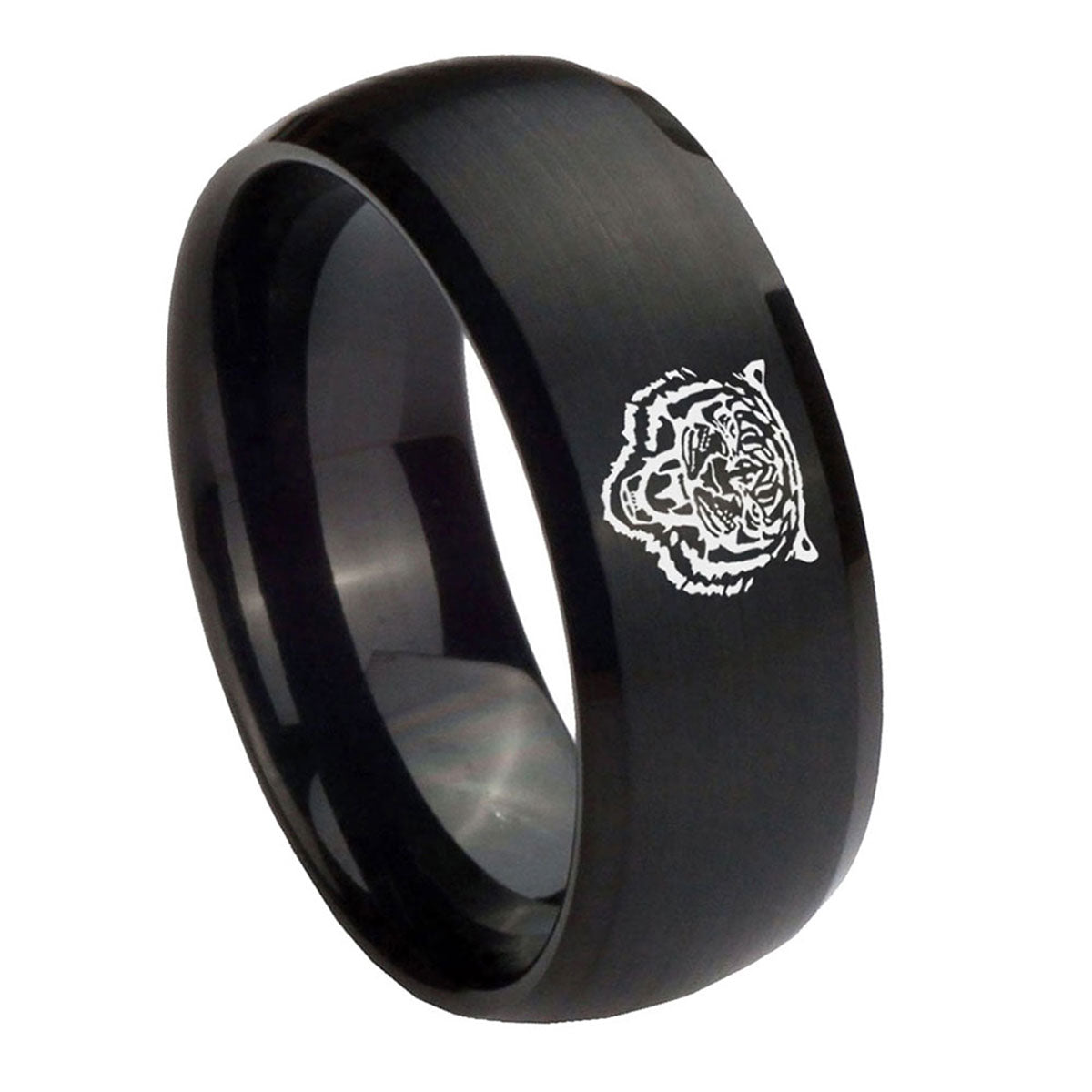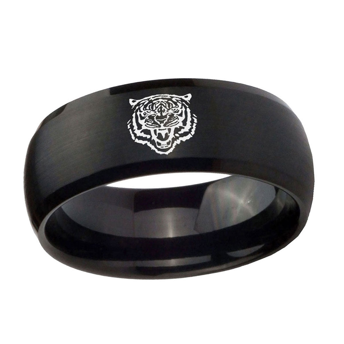 Propose with the 10mm Lion Dome Brush Black Tungsten Carbide Men's Engagement Band. This brushed black dome ring with Lion design is ideal for engagements.