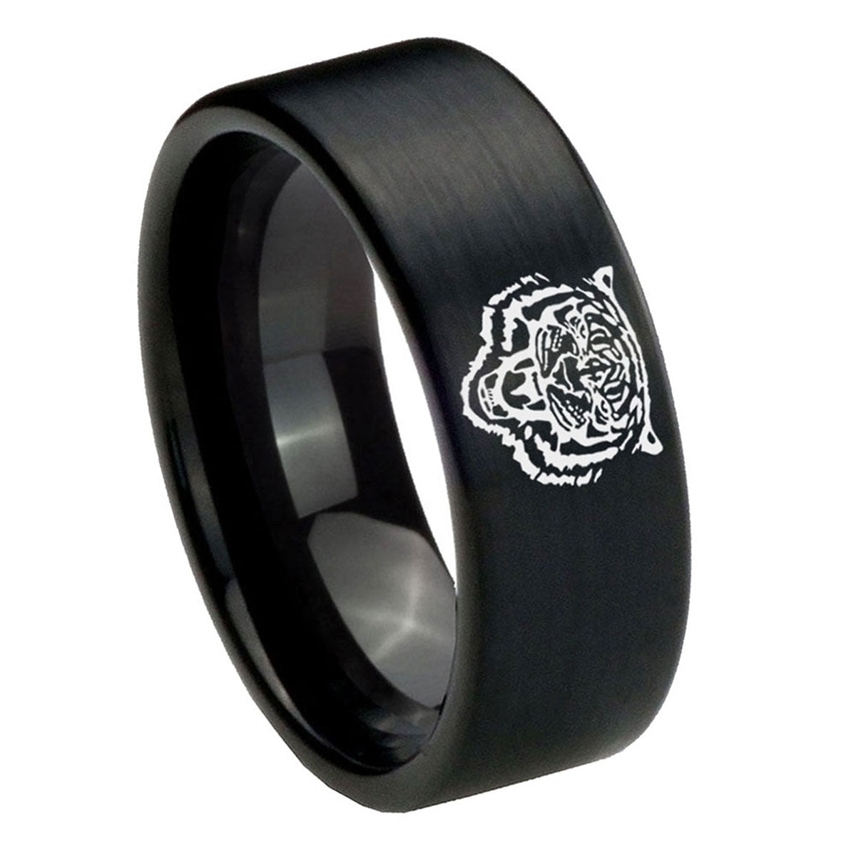 6, 8mm Lion Pipe Cut Brush Black Tungsten Carbide Wedding Bands Ring