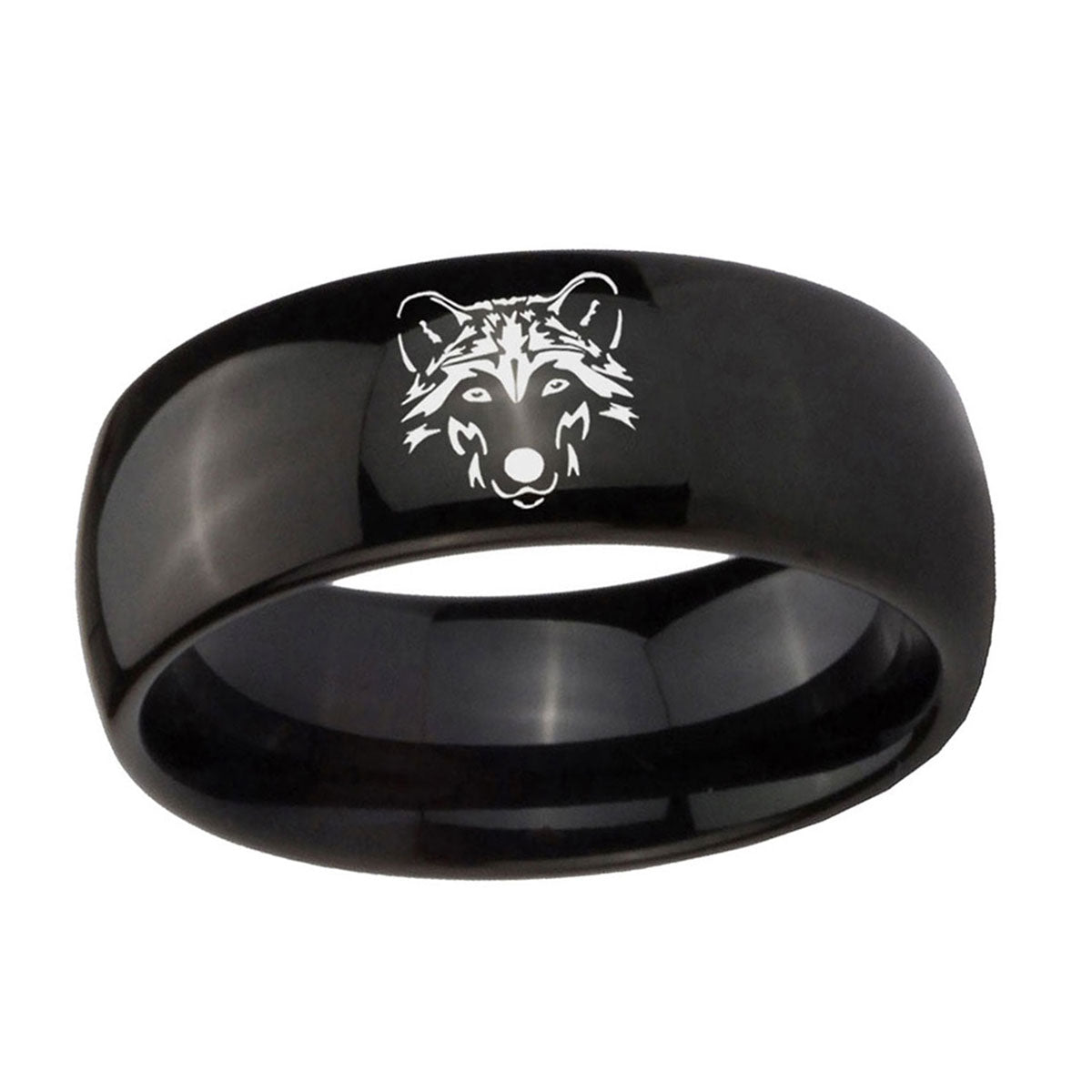 5, 8mm Wolf Dome Black Tungsten Carbide Mens Wedding Band