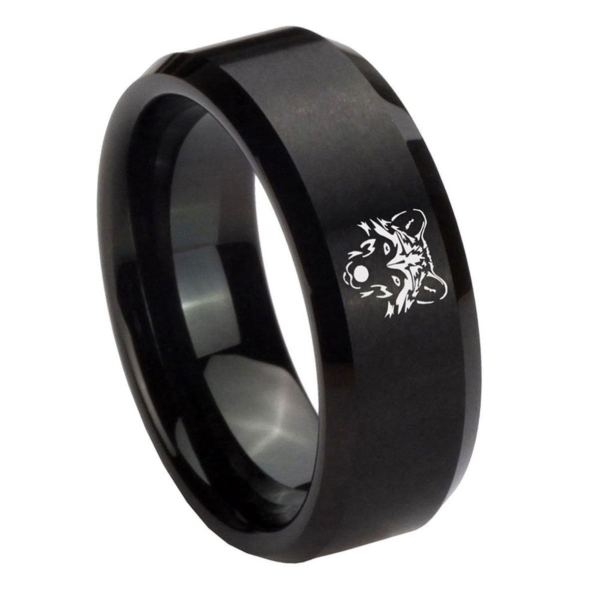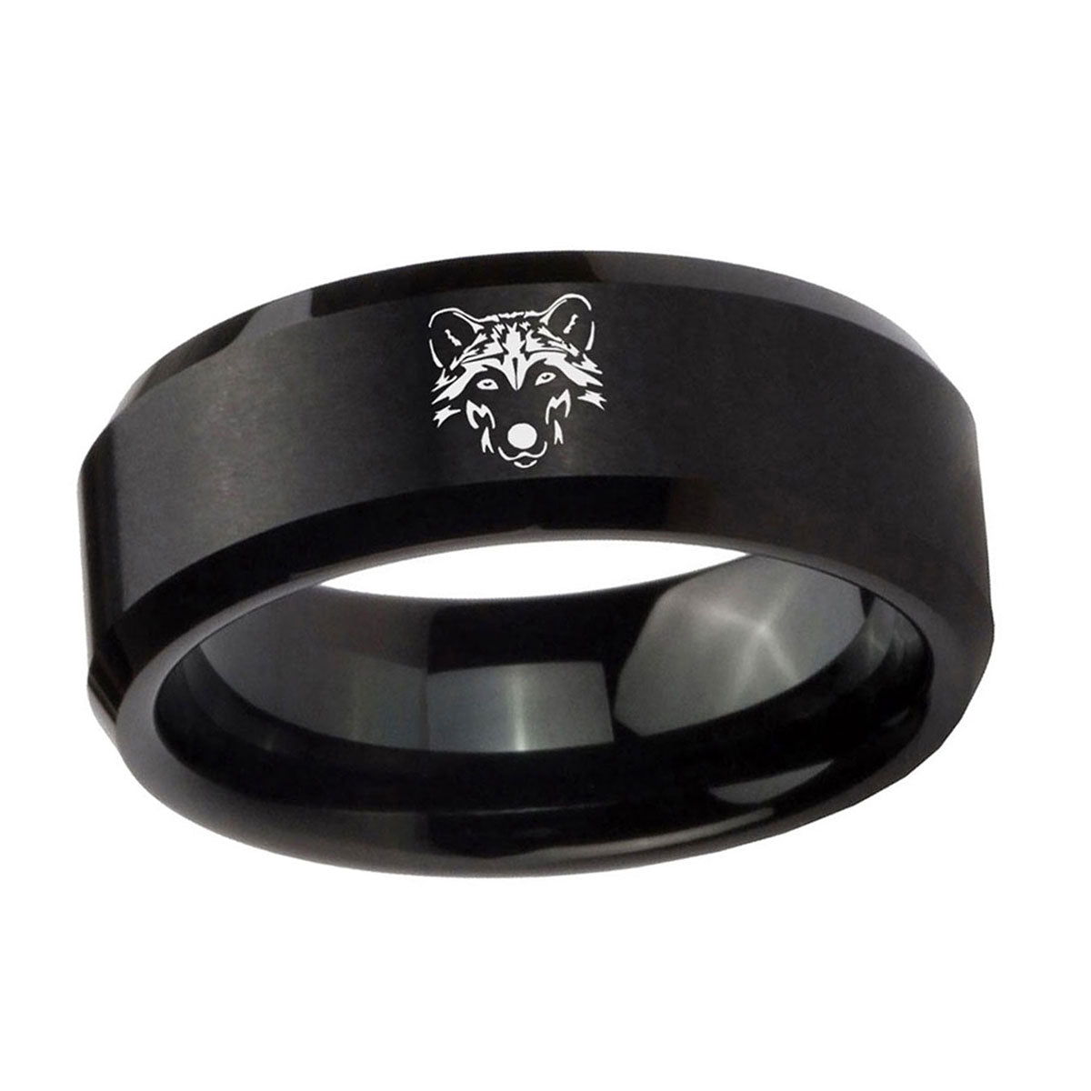 5, 8mm Wolf Beveled Edges Brush Black Tungsten Carbide Rings for Men