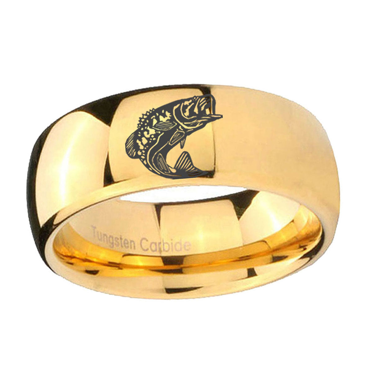 Celebrate with the 10mm Fishing Dome Gold Tungsten Carbide Wedding Band Mens. This gold-finished tungsten ring with Fishing design is a luxurious choice for weddings.