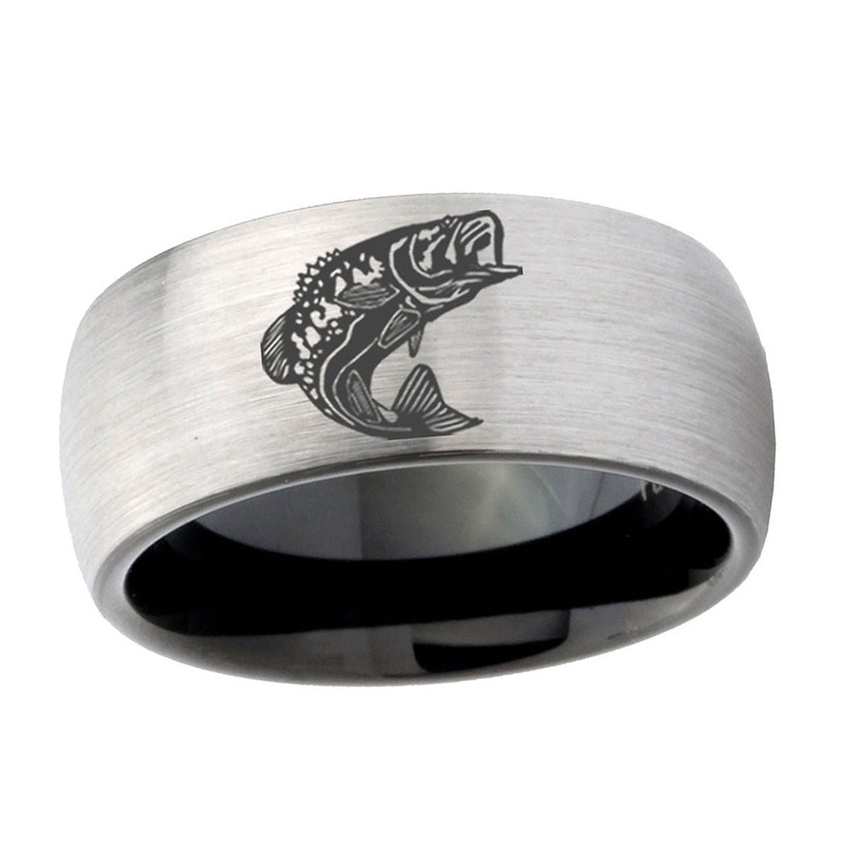 Propose with the 10mm Fishing Dome Tungsten Carbide Silver Black Engagement Ring. This silver and black tungsten dome ring with Fishing design is ideal for engagements.