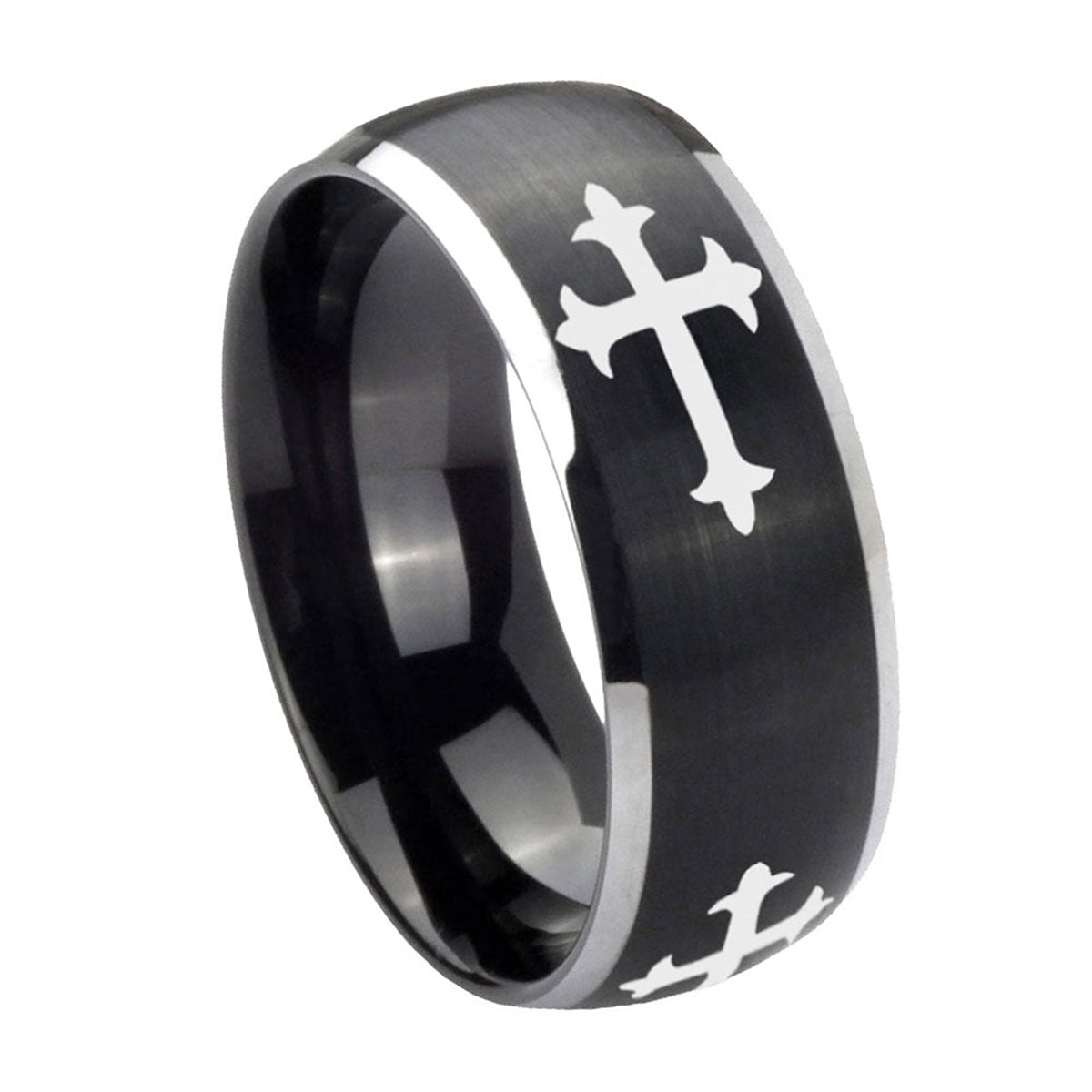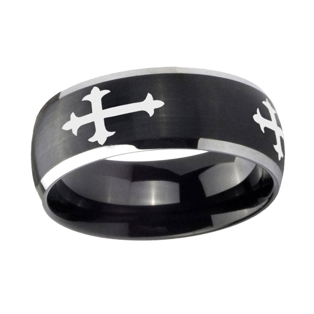 5, 8mm Christian Cross Religious Dome Brushed Black 2 Tone Tungsten Custom Mens Ring