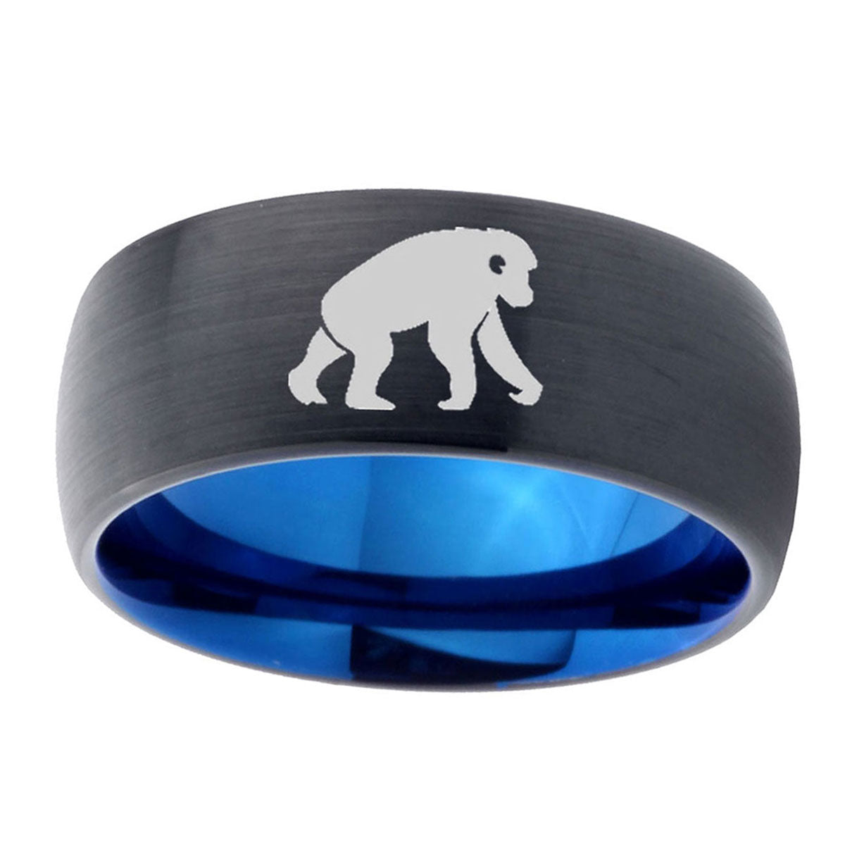 Propose with the 10mm Chimpanzee Dome Tungsten Carbide Blue Engagement Ring. This blue tungsten dome ring with chimpanzee design is ideal for engagements.
