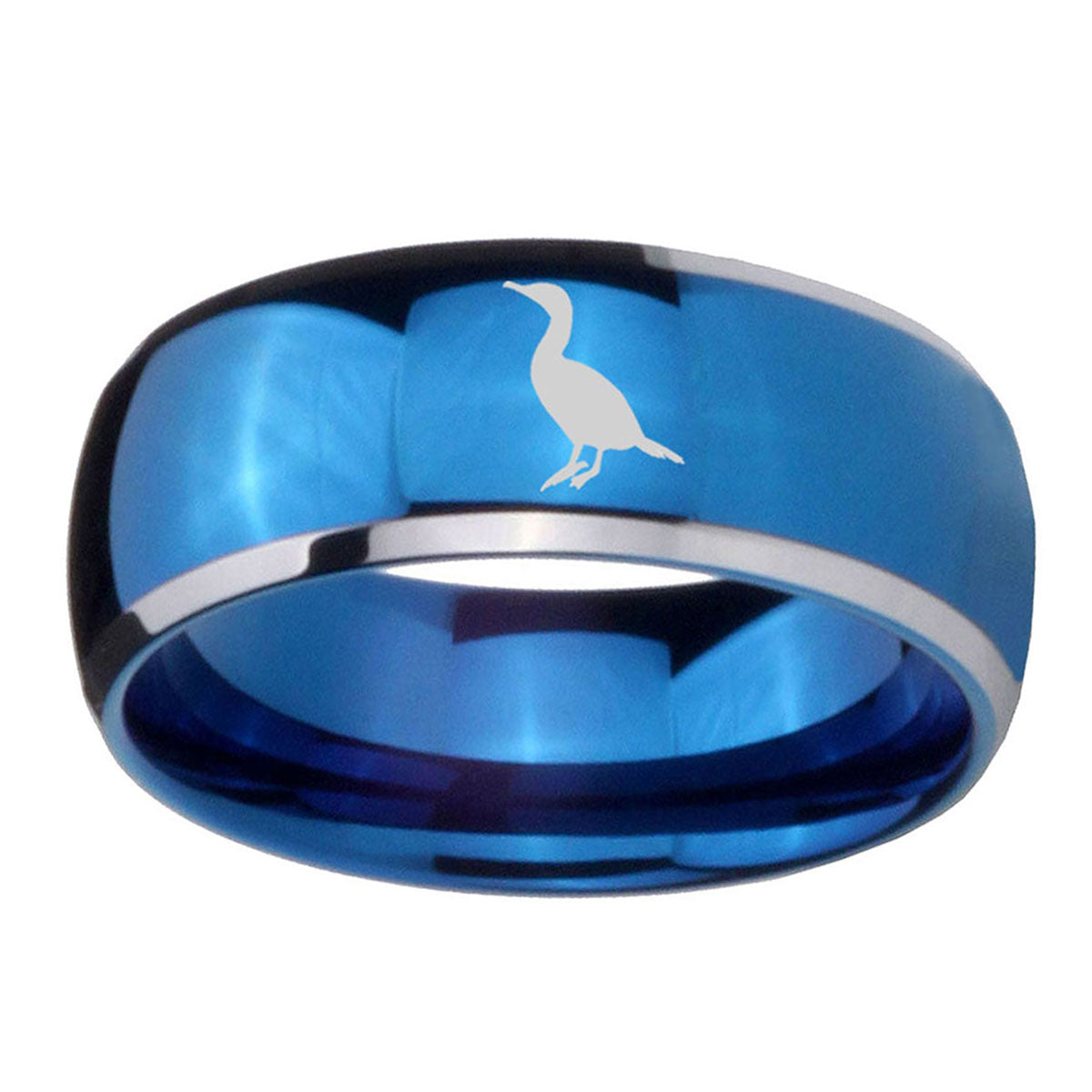 Introuding 5, 8mm Cormorant Dome Blue 2 Tone Tungsten Carbide Promise Ring . Offer in both 5mm and 8mm band width polished blue plated 2 tone fnished from size 4 to 14