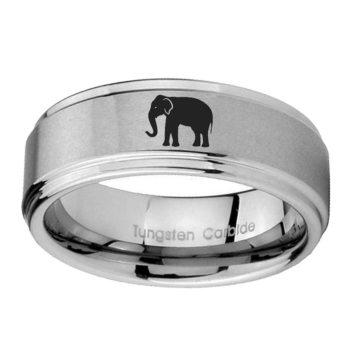 Celebrate with the 10mm Elephant Step Edges Brushed Tungsten Carbide Men's Wedding Ring. This brushed tungsten ring with Elephant design and step edges is perfect for weddings.