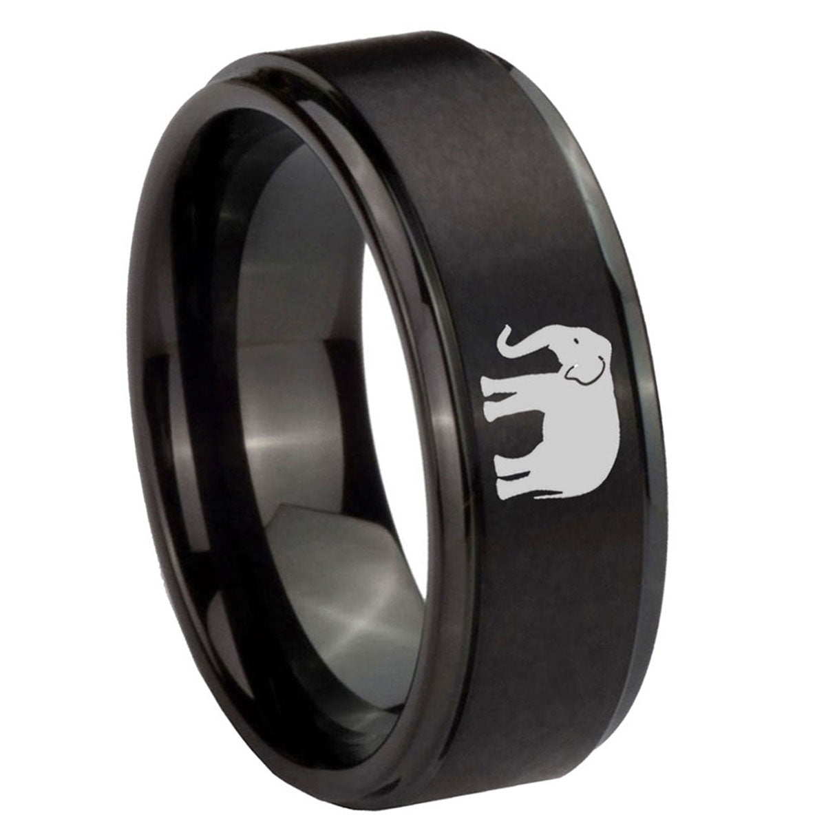 Make a promise with the 10mm Elephant Step Edges Brush Black Tungsten Men's Promise Rings. This brushed black ring with step edges and Elephant design is ideal for commitments.