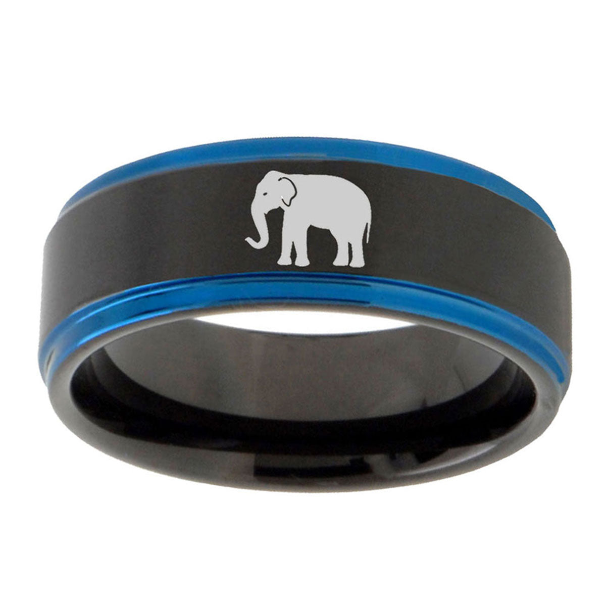 Make a promise with the 10mm Elephant Gold Step Edges Brushed Tungsten Carbide Mens Promise Ring. This gold and brushed tungsten ring with Elephant design is ideal for commitments.