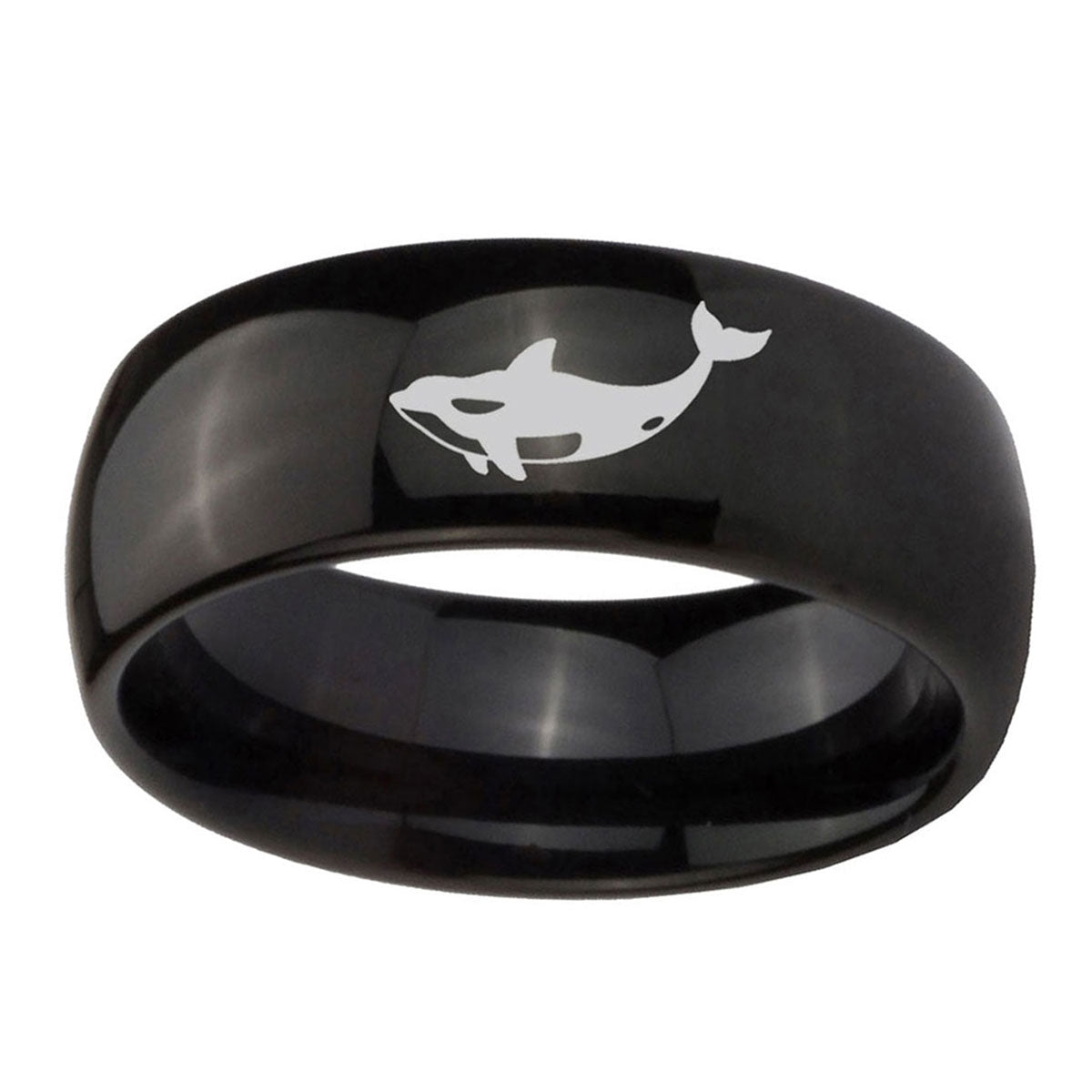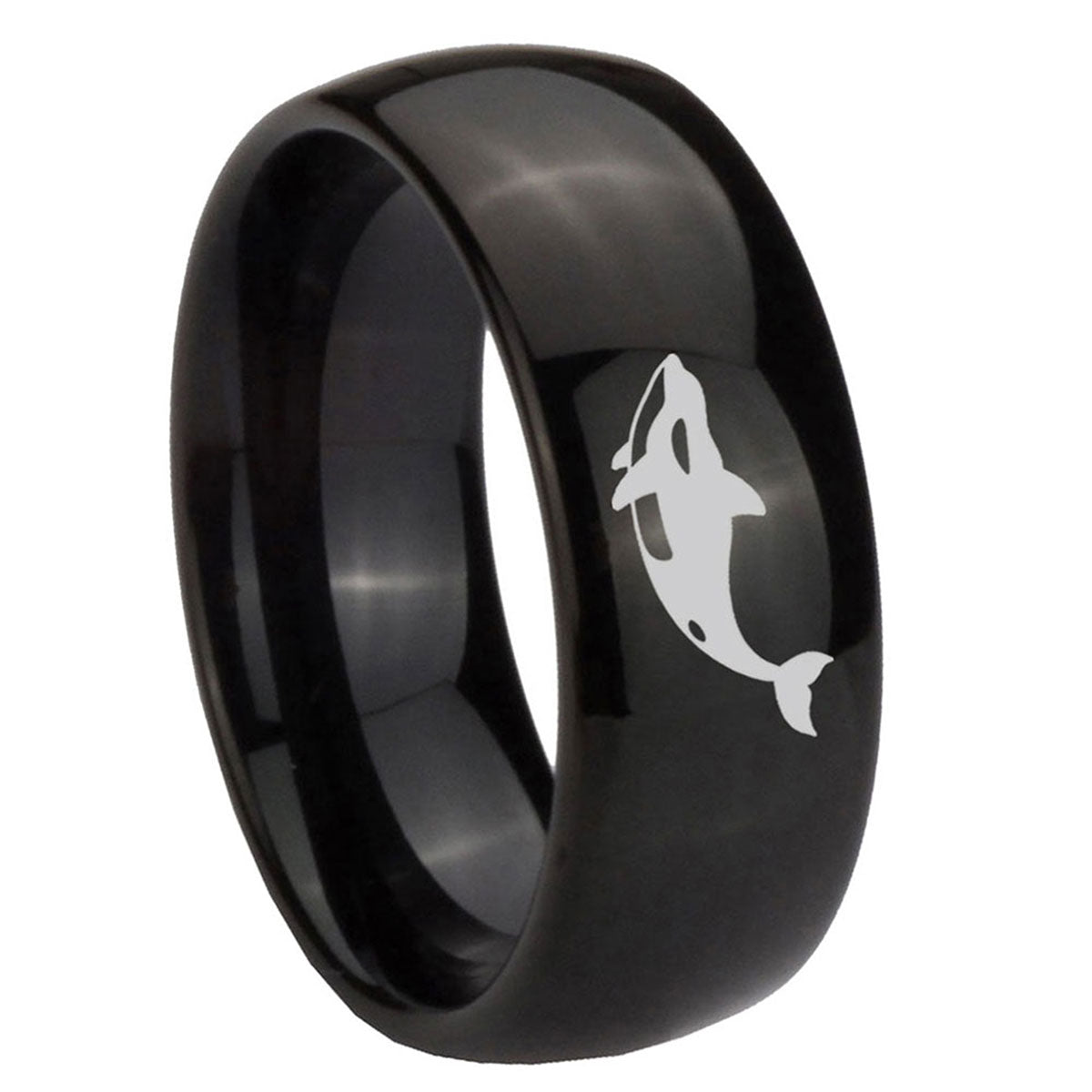 Celebrate milestones with the 10mm Keller Whale Dome Black Tungsten Carbide Mens Anniversary Ring. This dome-shaped black tungsten ring with Keller Whale design is perfect for anniversaries.