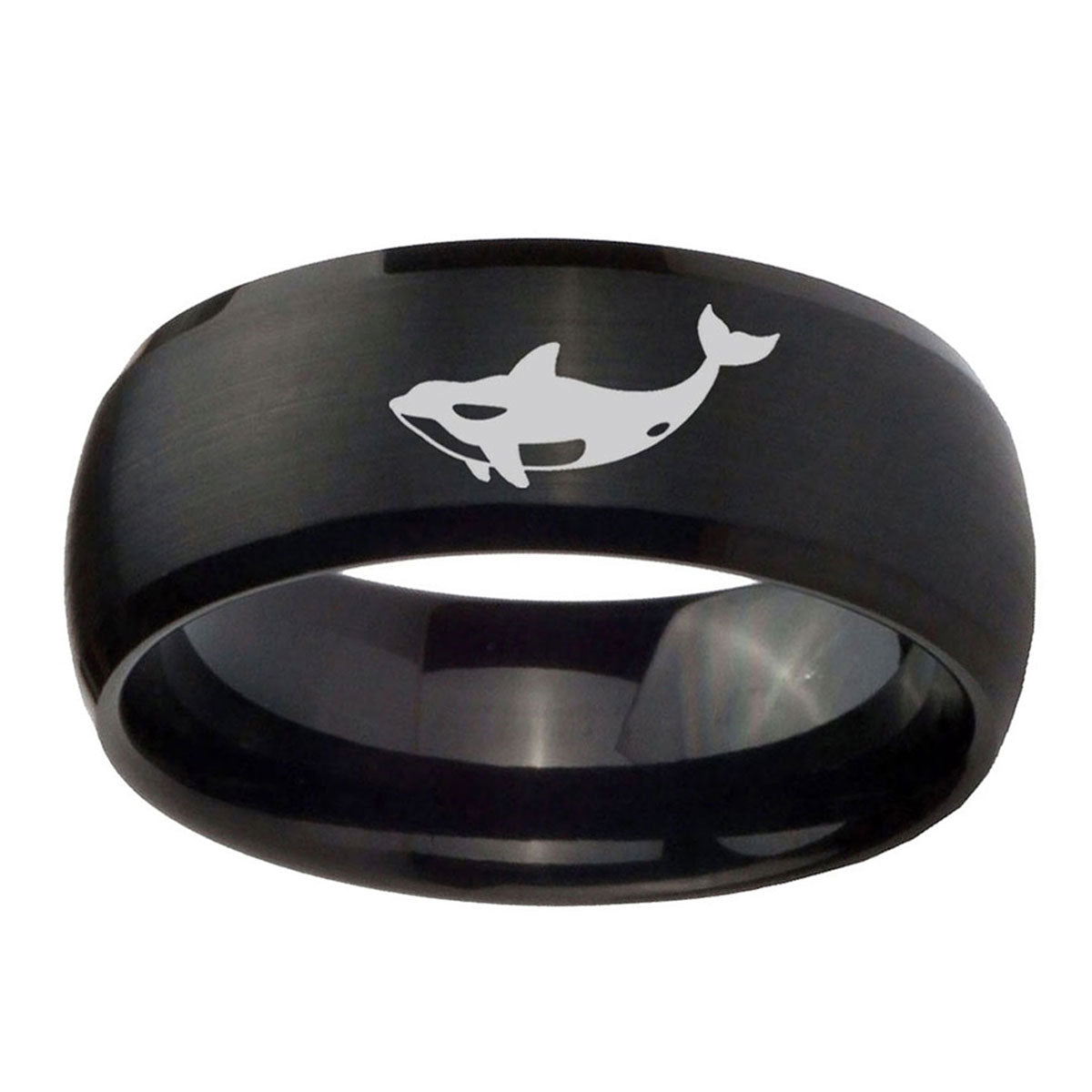 Propose with the 10mm Keller Whale Dome Brush Black Tungsten Carbide Men's Engagement Band. This brushed black dome ring with Keller Whale design is ideal for engagements.