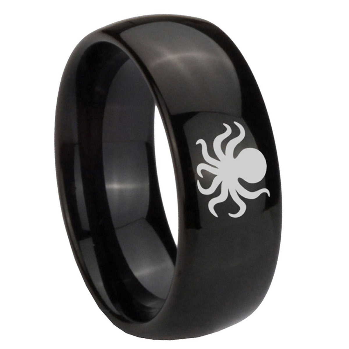 Celebrate milestones with the 10mm Octopus Dome Black Tungsten Carbide Mens Anniversary Ring. This dome-shaped black tungsten ring with Octopus design is perfect for anniversaries.