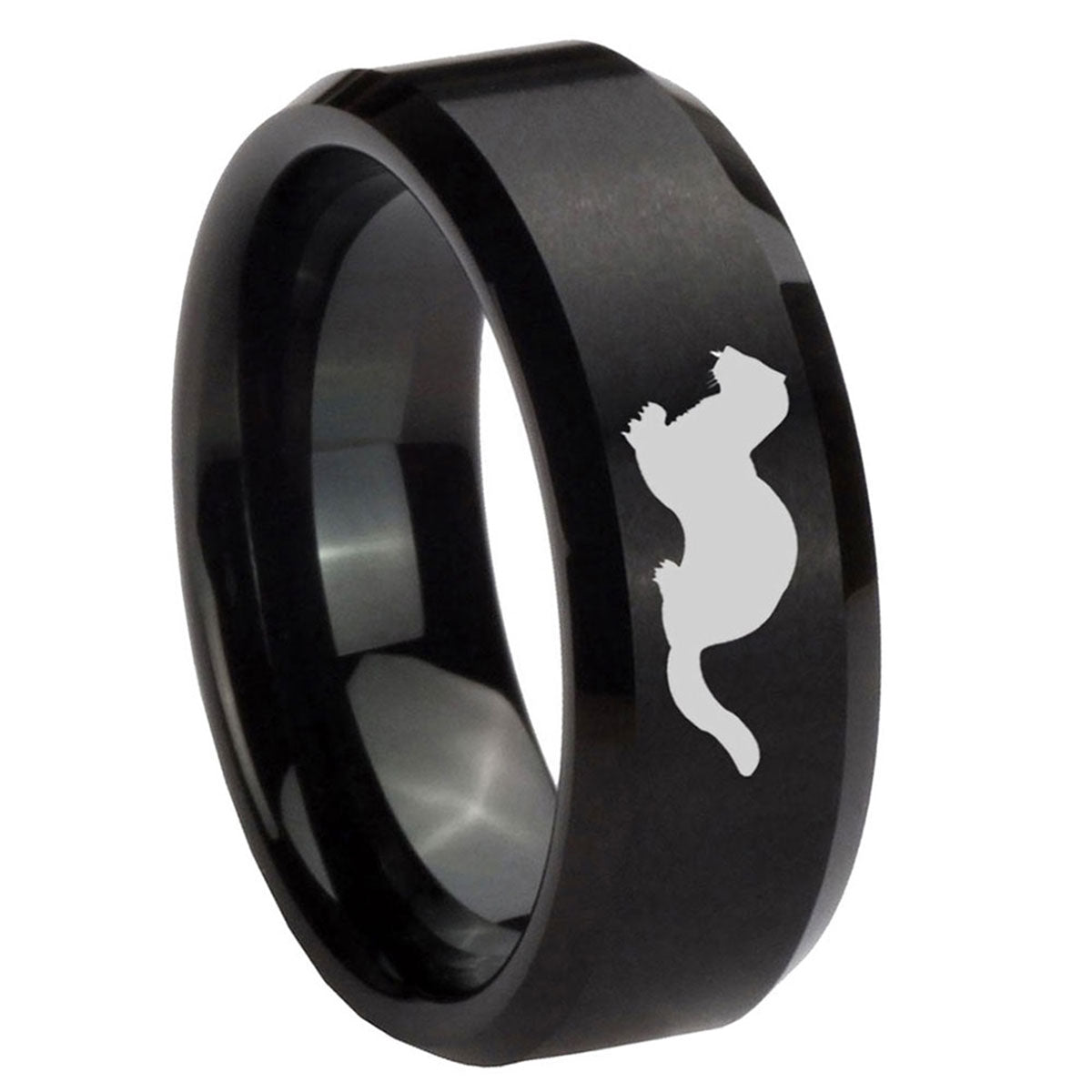 10mm Otter Beveled Edges Brush Black Tungsten Men's Engagement Ring