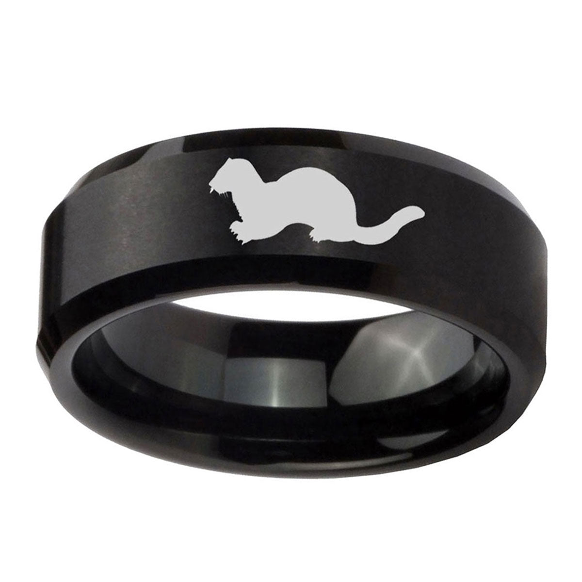 Propose with the 10mm Otter Beveled Edges Brush Black Tungsten Men's Engagement Ring. This brushed black tungsten ring with Otter design is ideal for engagements.