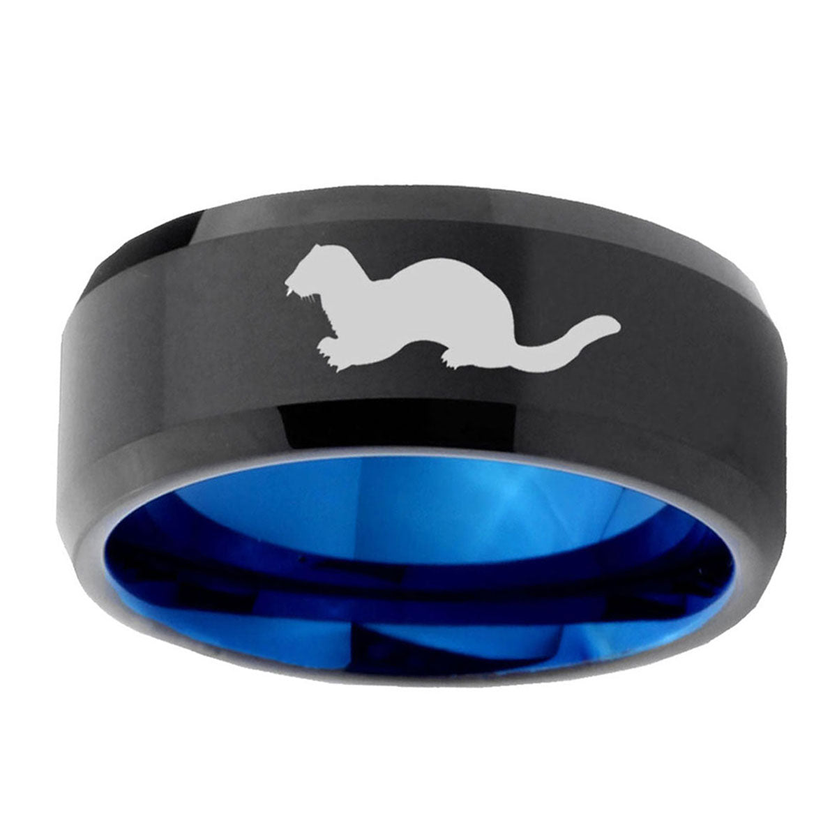 Celebrate with the 10mm Otter Bevel Tungsten Carbide Blue Wedding Ring. This blue tungsten ring with Otter design is perfect for weddings.