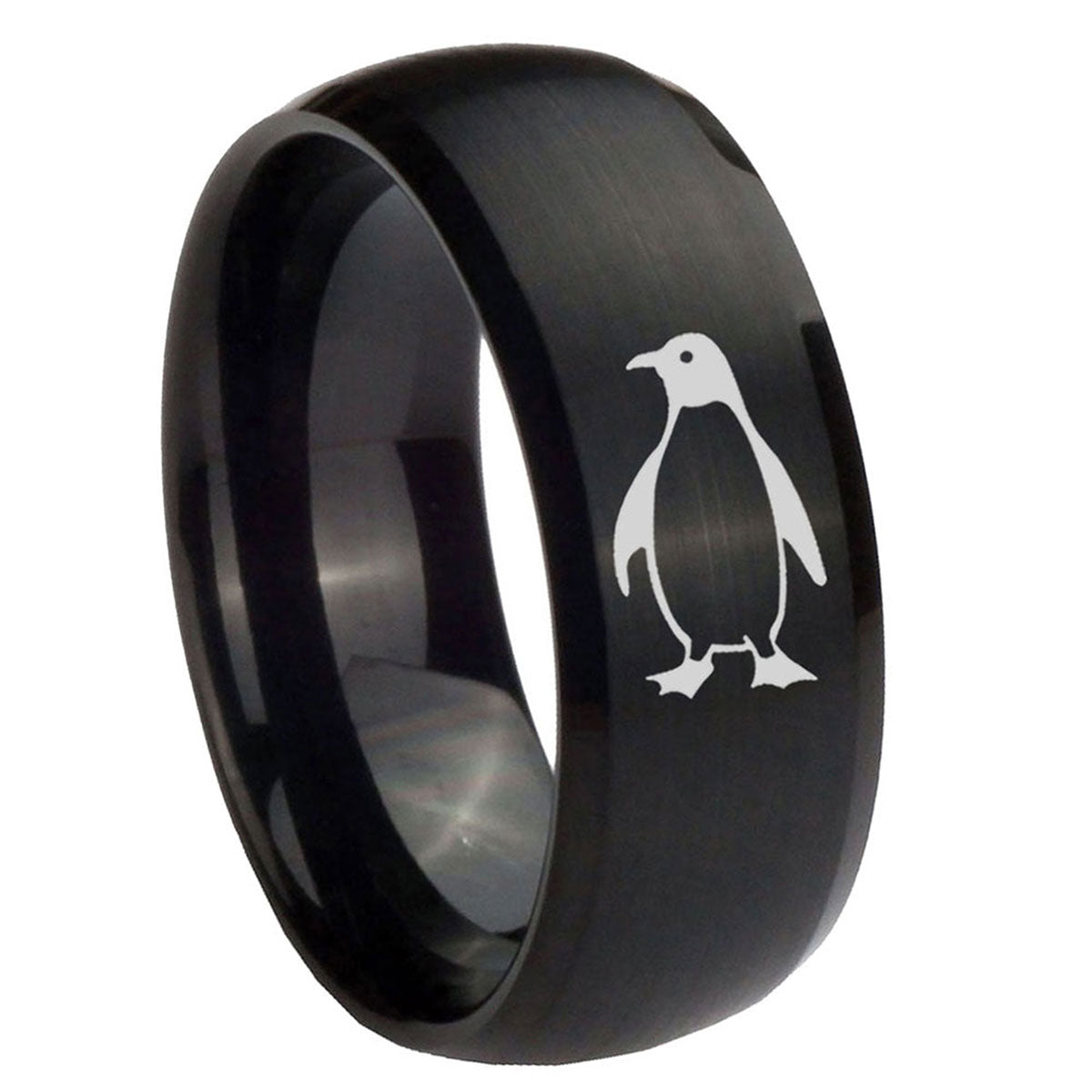Propose with the 10mm Penguin Dome Brush Black Tungsten Carbide Men's Engagement Band. This brushed black dome ring with Penguin design is ideal for engagements.