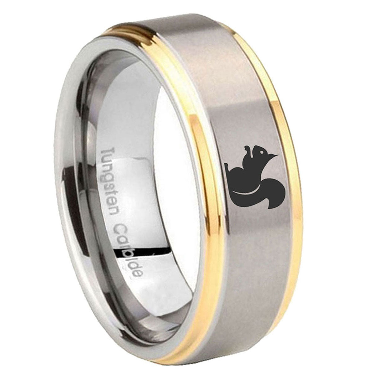 5, 8mm Squirrel Step Edges Gold 2 Tone Tungsten Carbide Mens Ring