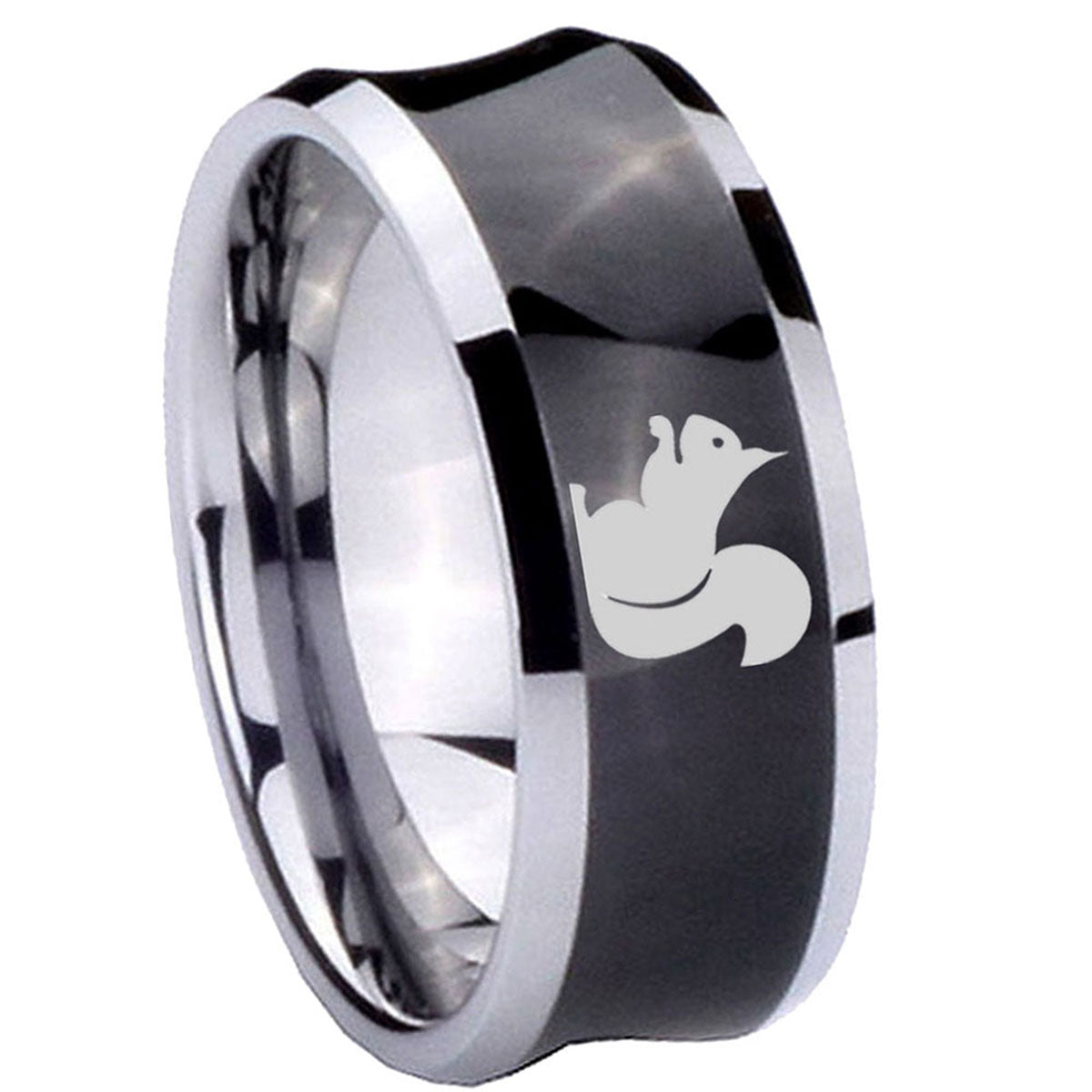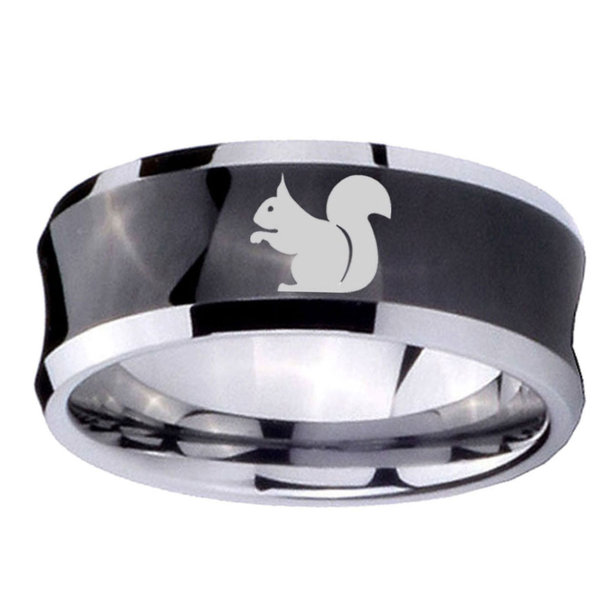Propose with the 10mm Squirrel Concave Black Tungsten Carbide Men's Engagement Band. This concave black tungsten ring with Squirrel design is ideal for engagements.