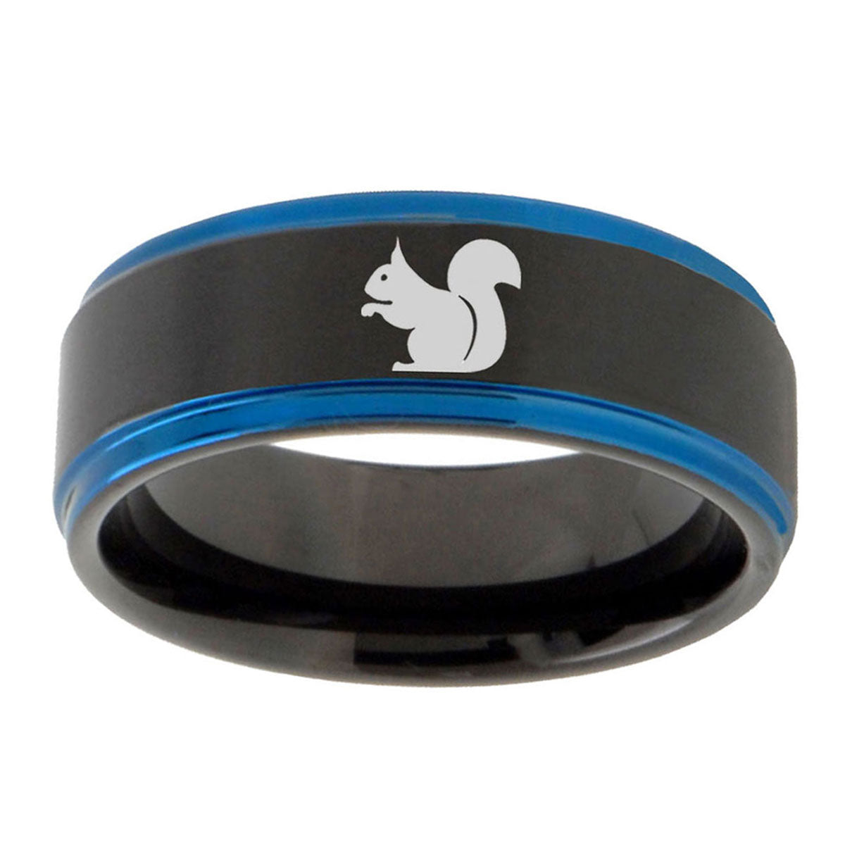 Make a promise with the 10mm Squirrel Blue Step Edges Brushed Tungsten Carbide Mens Promise Ring. This brushed blue tungsten ring with Squirrel design is ideal for commitments.