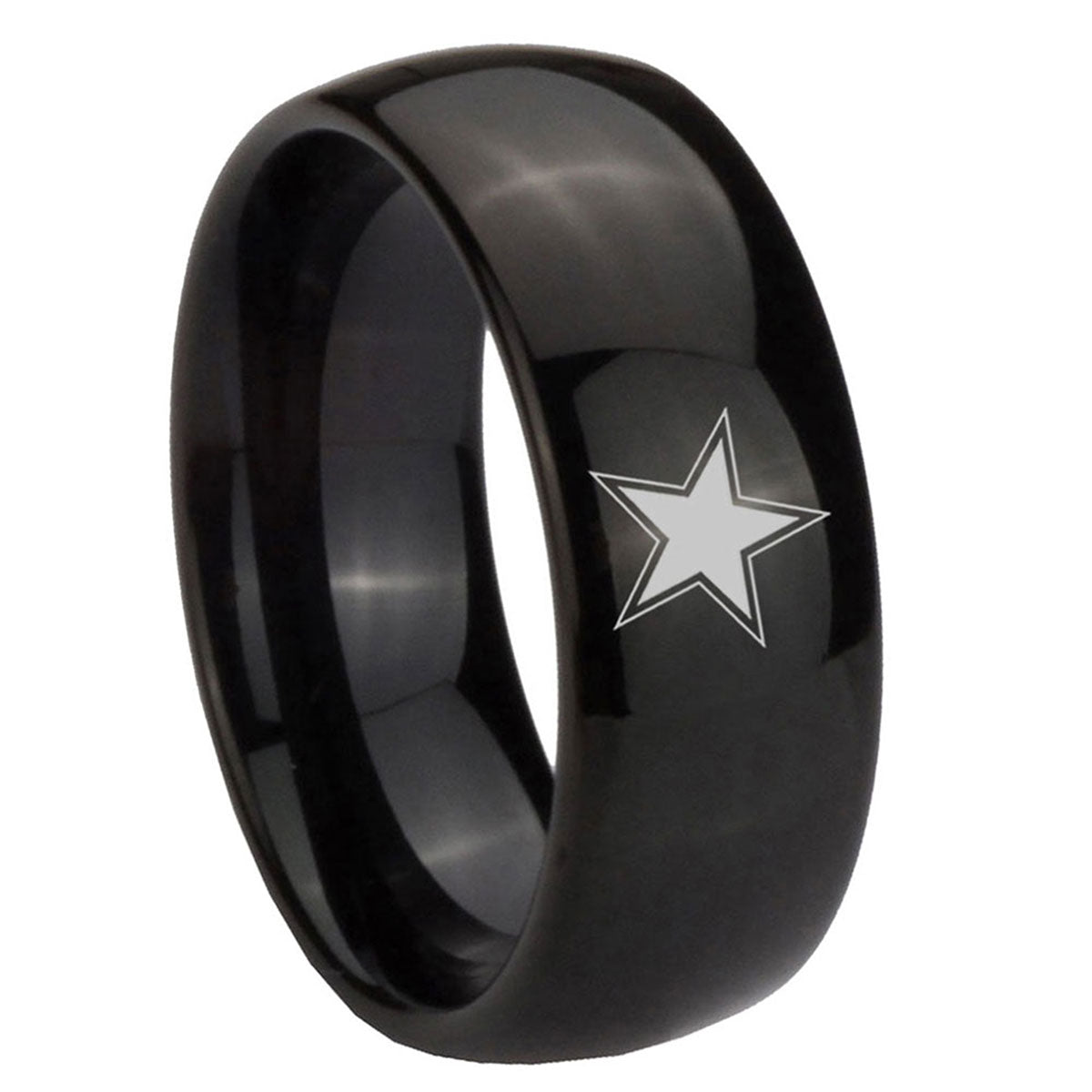 Celebrate milestones with the 10mm Cowboys Star Dome Black Tungsten Carbide Mens Anniversary Ring. This dome-shaped black tungsten ring with Cowboys Star design is perfect for anniversaries.