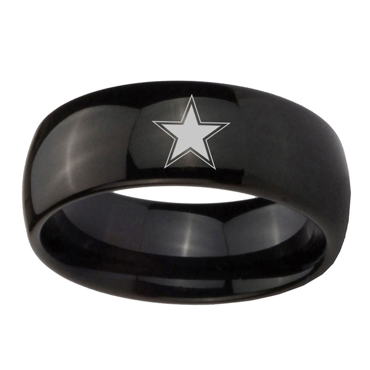 10mm Cowboys Star Dome Black Tungsten Carbide Mens Anniversary Ring