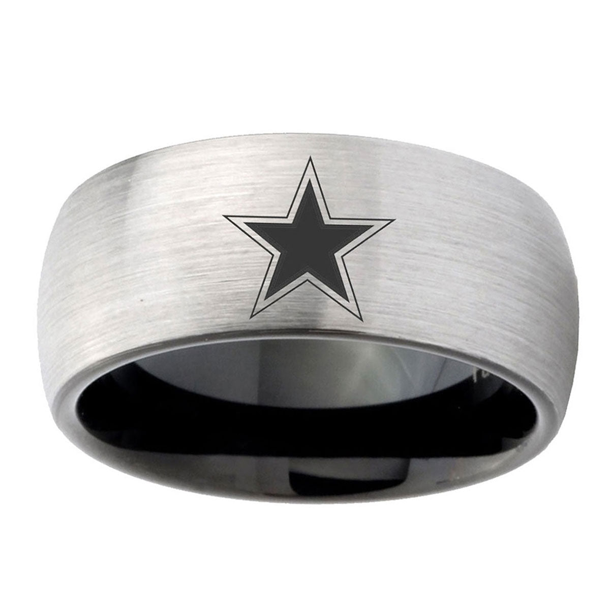 Introuding 6, 8mm Cowboys Star Dome Tungsten Carbide Silver Black Wedding Band Mens . Offer in both 5mm and 8mm band width silver and black plated finished from size 4 to 14