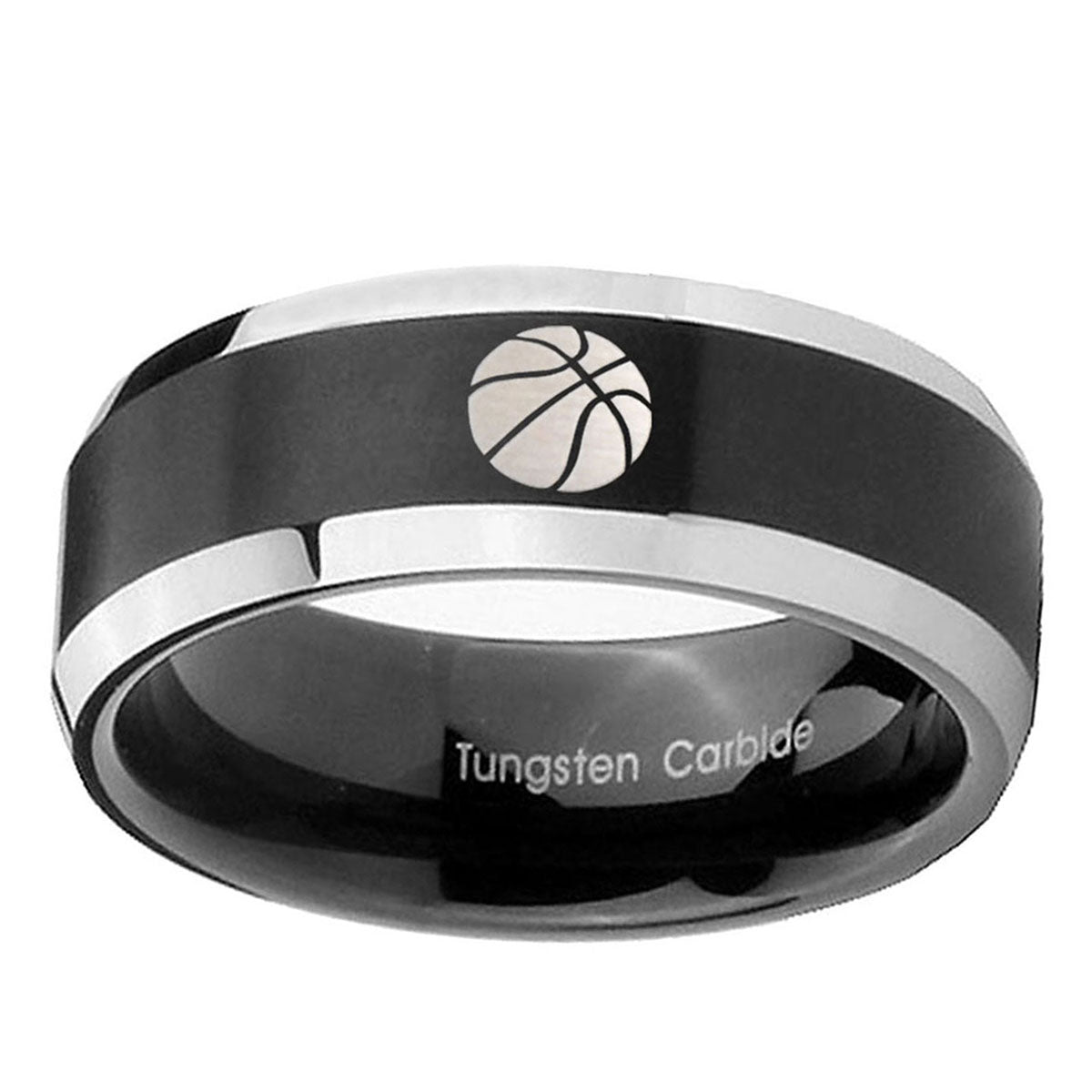 Style the 10mm Basketball Beveled Edges Brush Black 2 Tone Tungsten Carbide Rings for Men. This brushed black and 2-tone ring with basketball design is ideal for men.