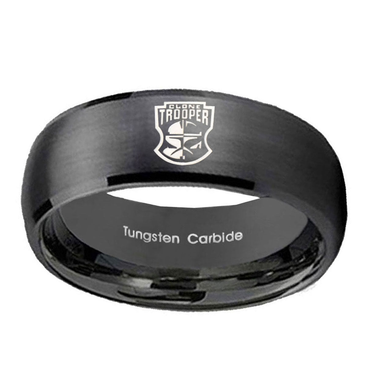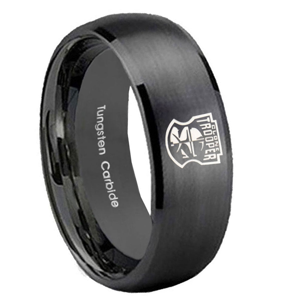 Make a promise with the 10mm Clone Trooper Dome Brush Black Tungsten Men's Promise Rings. This brushed black dome ring with Clone Trooper design is ideal for commitments.