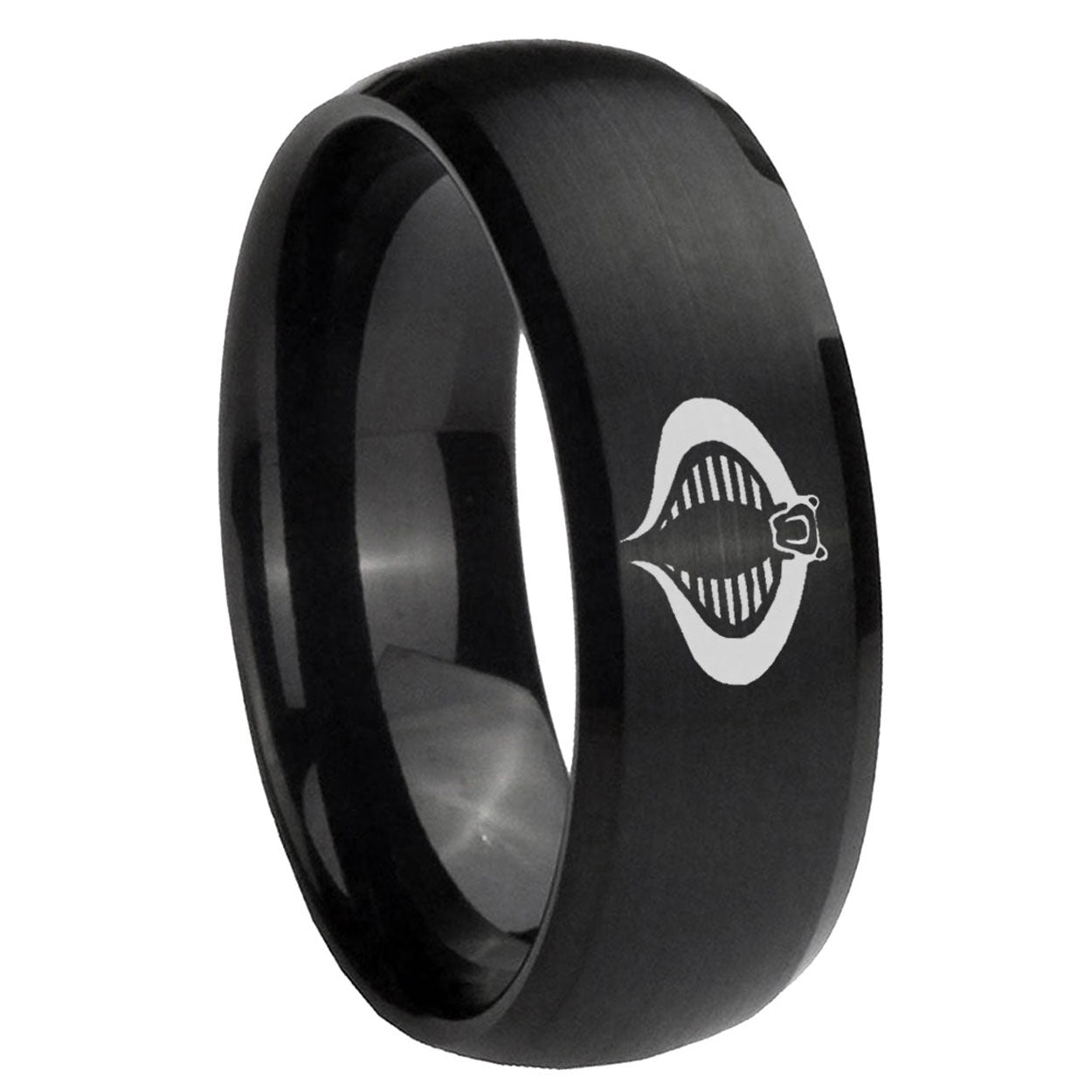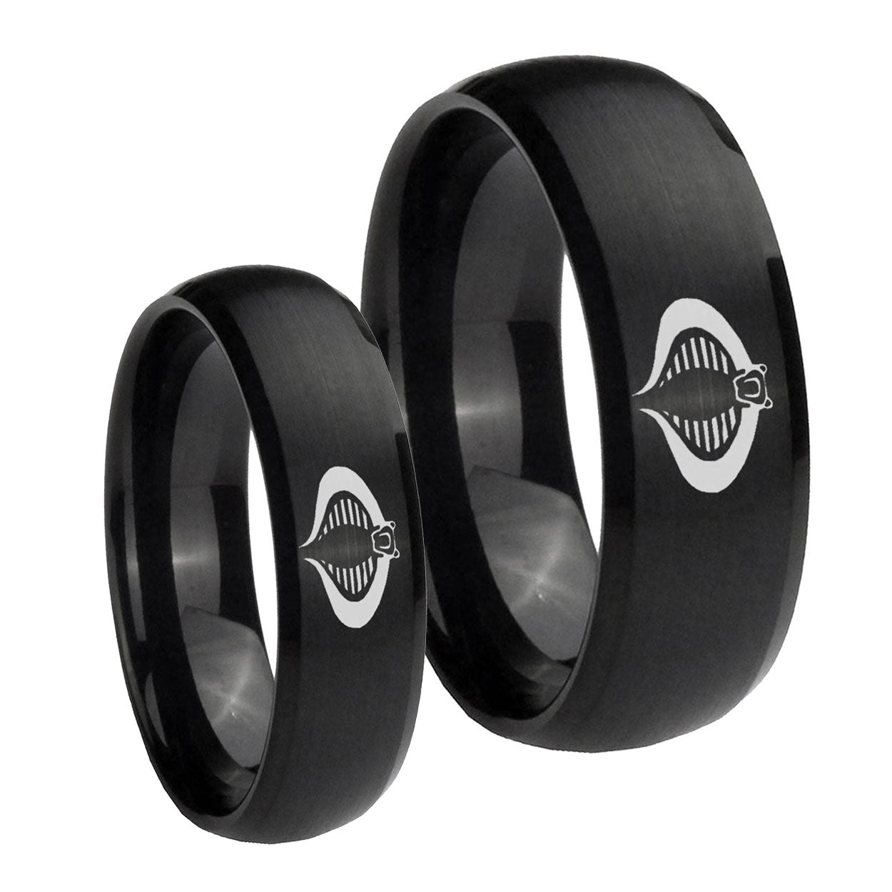 Bride and Groom Cobra Dome Brush Black Tungsten Carbide Engraved Ring Set