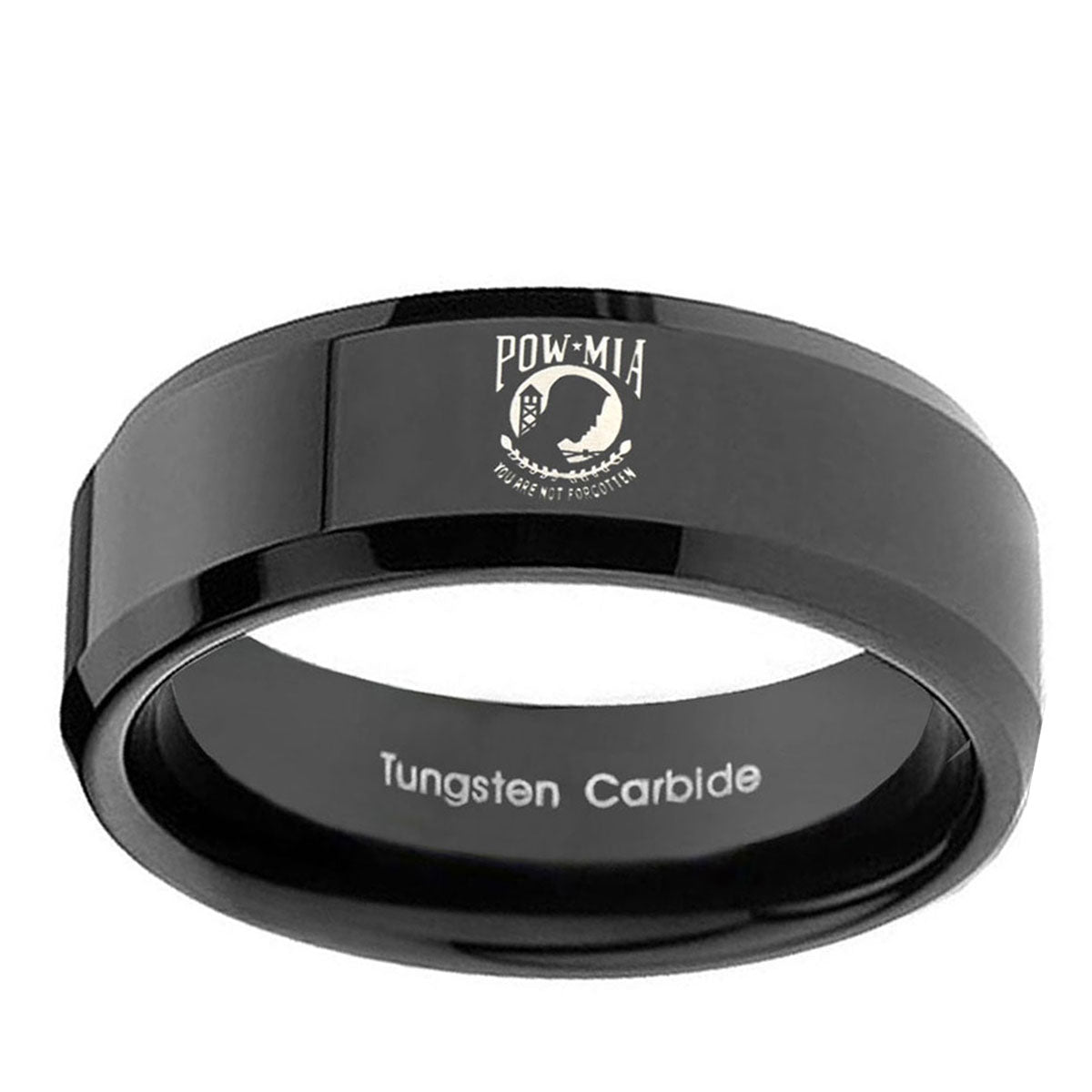 5, 8mm Military Pow Beveled Edges Black Tungsten Carbide Wedding Bands Ring